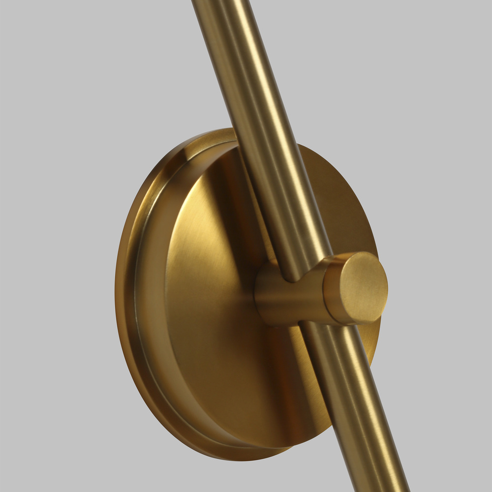 Nodes task, ceiling and wall lighting is minimal yet bold, highlighting Kelly's distinctive juxtaposition of mixed-materiality and curvilinear form. Light radiates from milk glass globes set against metal discs. All fixtures can be used or without the discs. The cast canopy is available in Burnished Brass or Midnight Black. Hanging fixtures within this family feature black fabric cords, while pivot sconces can be cord and plug or hard wire.