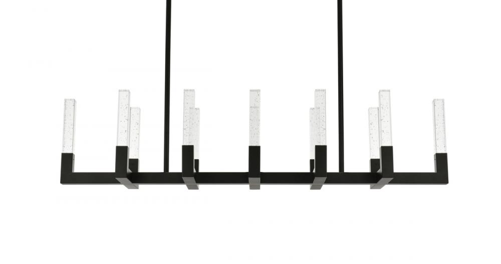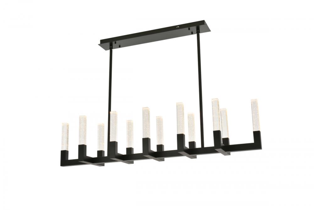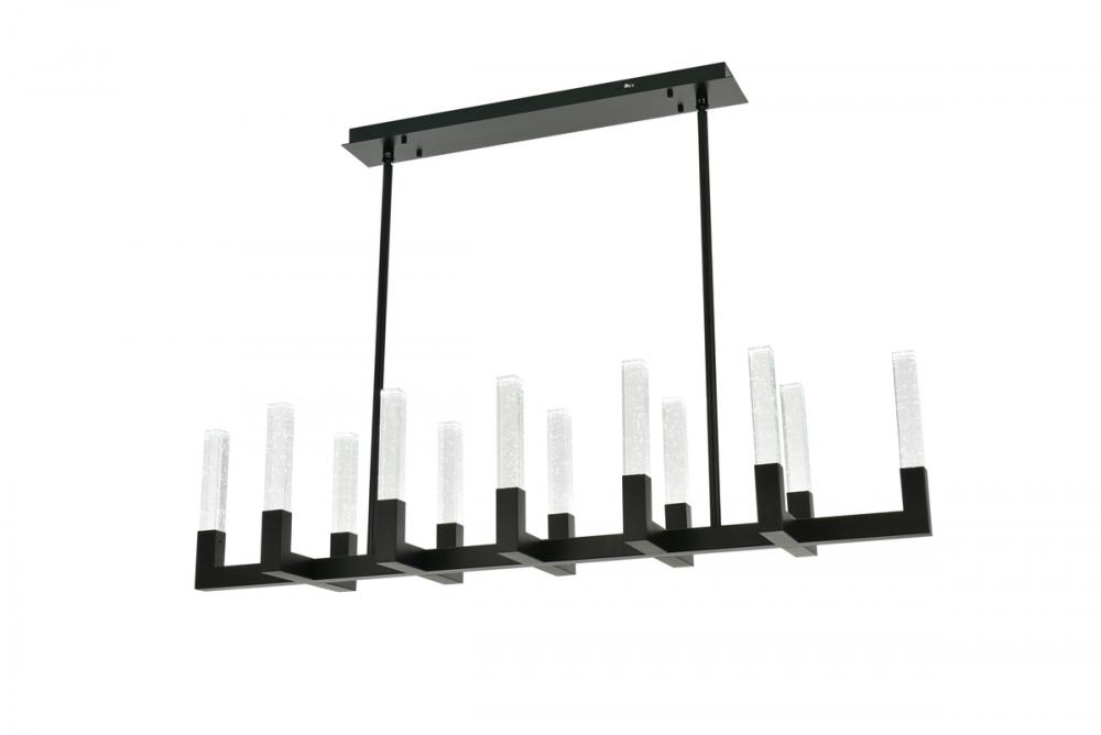 "Introducing the Noemi 51-inch pendant—an extraordinary blend of contemporary design and industrial elegance. with its chic linear silhouette, this pendant light adds a modern flair to your decor. The seeded glass crystal rods create a captivating play of light, enhancing your space with timeless elegance. Crafted from enduring iron and ETL certified for safety, the Noemi ensures a perfect balance of enduring quality and brilliant illumination with energy-efficient LED lights. Customize your ambiance effortlessly with the adjustable color temperature feature. Whether you seek a relaxed evening glow, a neutral and focused atmosphere, or a vibrant and energizing radiance, our chandelier provides the flexibility to cater to your preferences. Elevate your space with personalized illumination, creating the perfect setting for every moment. The Noemi 51-inch pendant is a statement of sophistication and functionality for your home."
