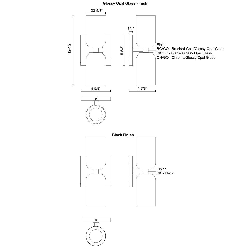 Kuzco Lighting Inc VL57718-BK/GO - Nola 18-in Black/Glossy Opal Glass Socket Vanity Light