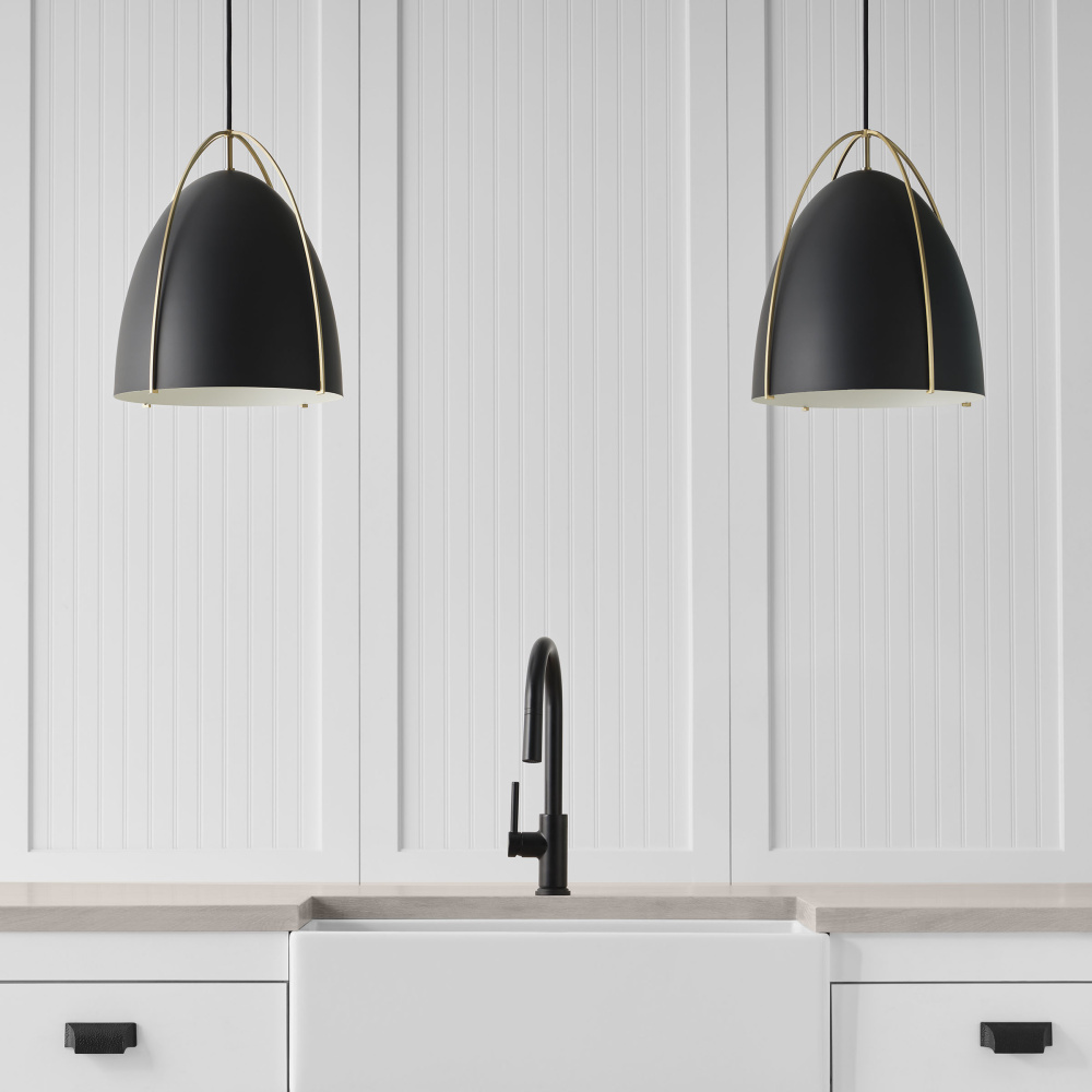 Contemporary, industrial fixture with sleek metal shade with complement any dining room, kitchen, or foyer
