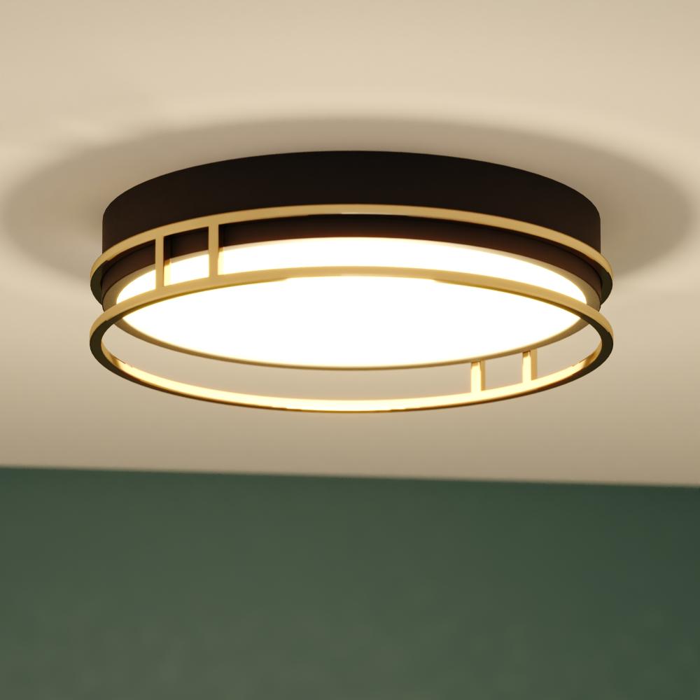 The Northgate collection blends elegant design with rich finishes for an effortless high-end look. The satin gold rings frame a matte black drum which houses a frosted white shade. The integrated LED light features selectable color temperatures of 3000K, 4000K, and 5000K to create your preferred environment for relaxing or working. This flush mount ceiling light works well in bedrooms, offices, hallways, and foyers.