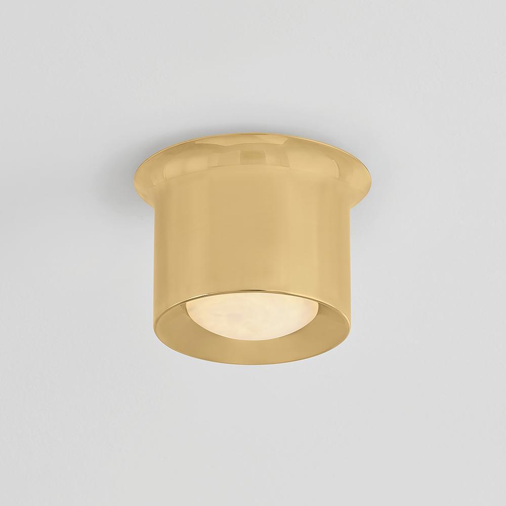 A sleek flush mount with unadorned metalwork, Noxon celebrates the beauty of simplicity. Situated within the metal frame, the matte cloud glass shade washes light around the reflector. with a gentle swell at the canopy, the frame creates the effect of flowing into the ceiling. Noxon is available in a classic Aged Brass or more industrial Distressed Bronze finish.