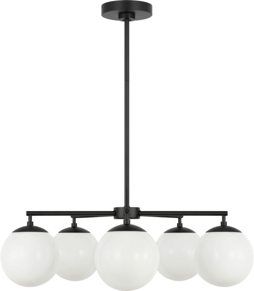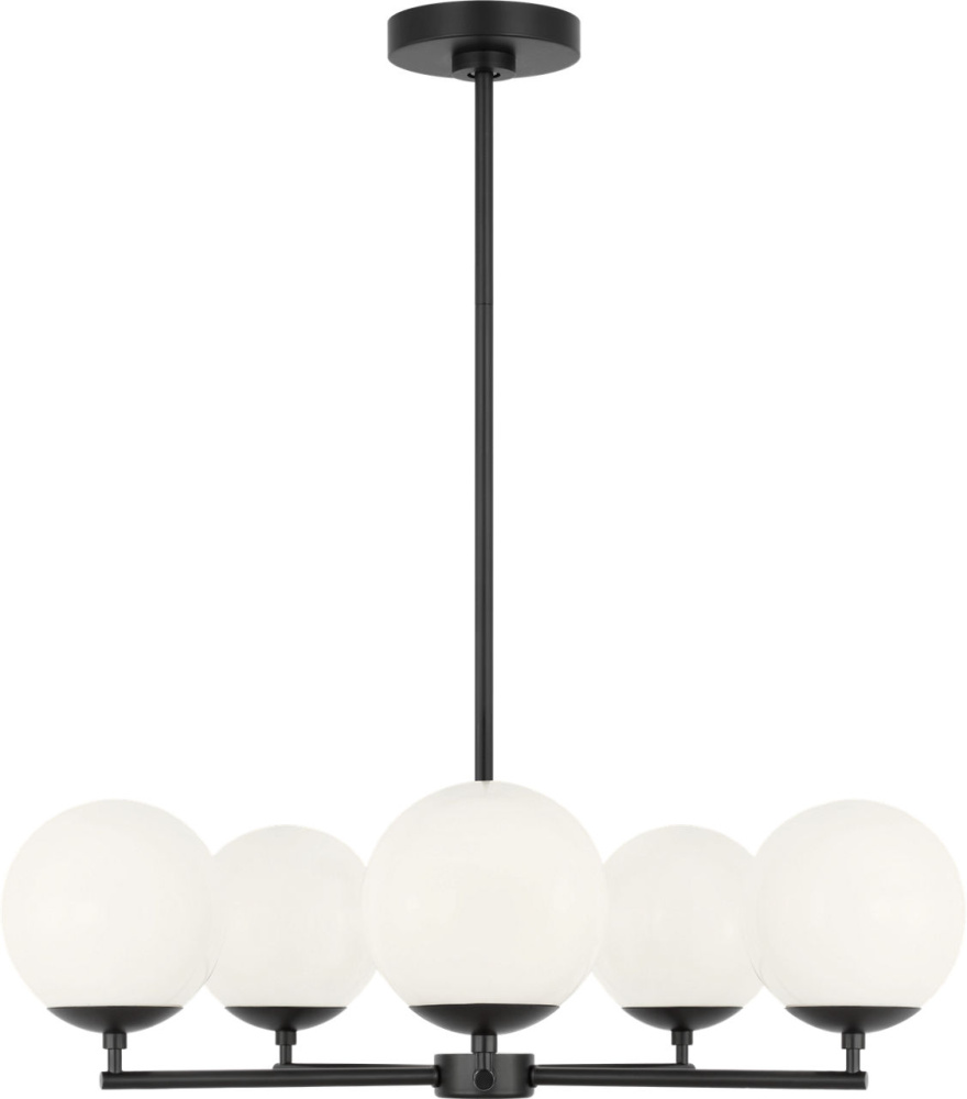 The Nube 5?Light Chandelier presents five milk glass globes arranged around a minimalist central hub. Its reduced scale retains the airy aesthetic of larger variants while suiting dining rooms, foyers, or smaller living areas. The design emphasizes negative space, letting the spheres feel weightless and unobstructed.