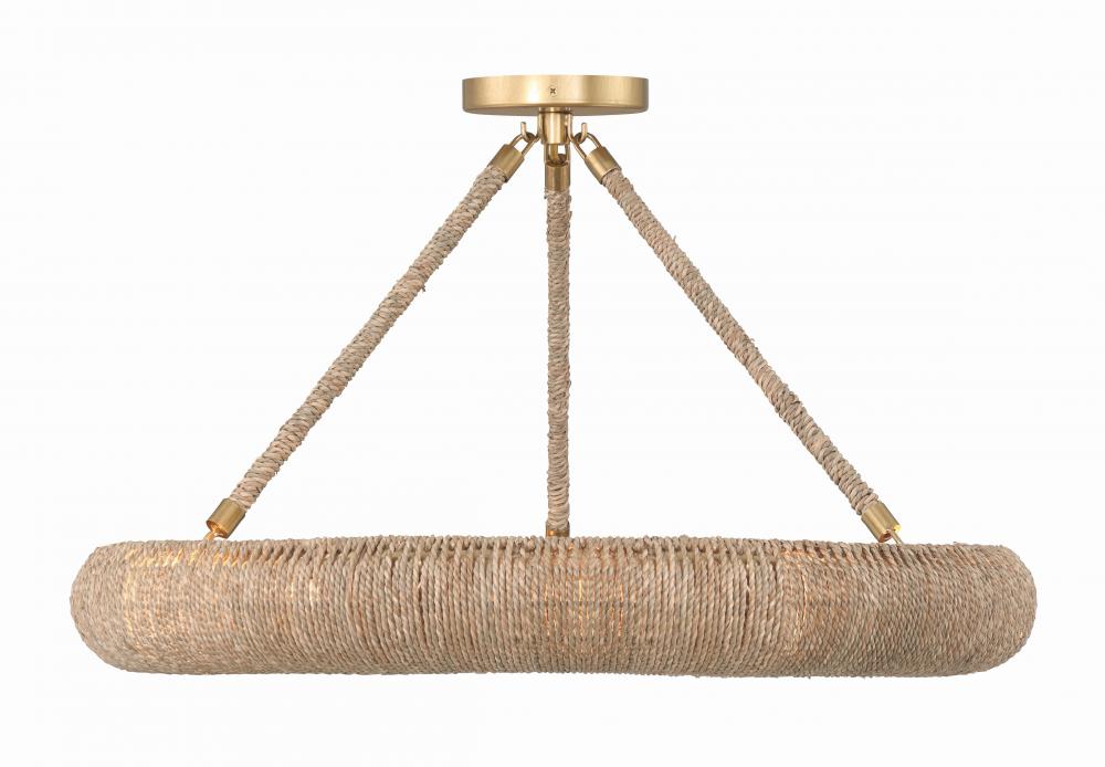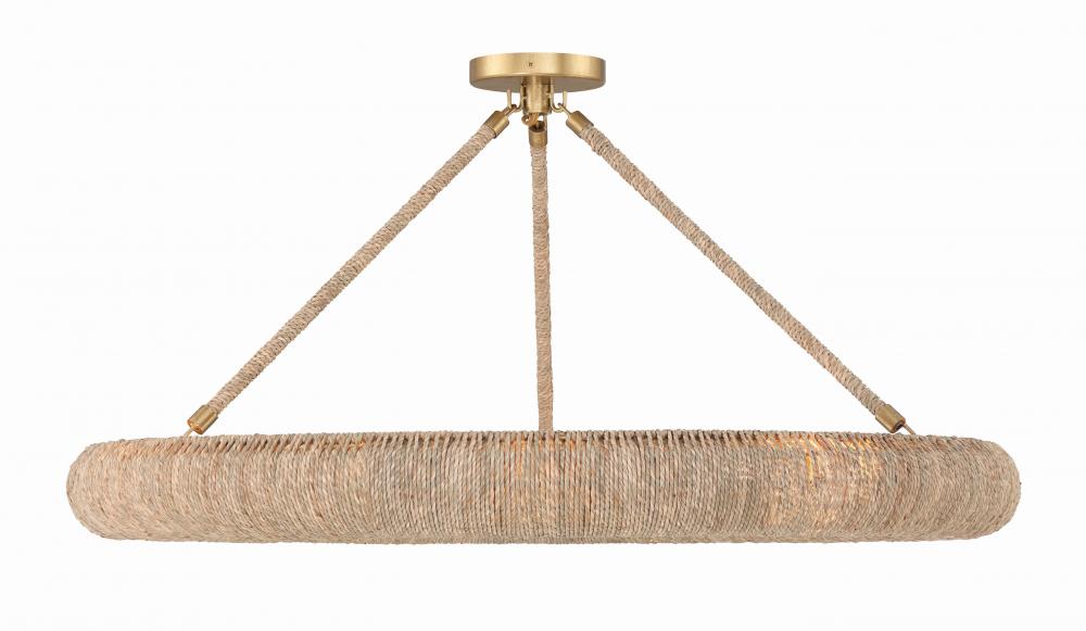 Elevate your space with the Oakley ring chandelier, an artisan masterpiece that blends natural charm with exquisite craftsmanship. With its open-top design, this chandelier infuses a room with a soothing and relaxed ambiance, directing light upward while casting a soft, filtered glow downward. Crafted from natural Lake Grass in a warm, neutral tone, this fixture showcases intricate hand-wrapped details that add depth and character, reflecting the essence of skilled artisans. With dual mounting options, it effortlessly adapts to any space.
