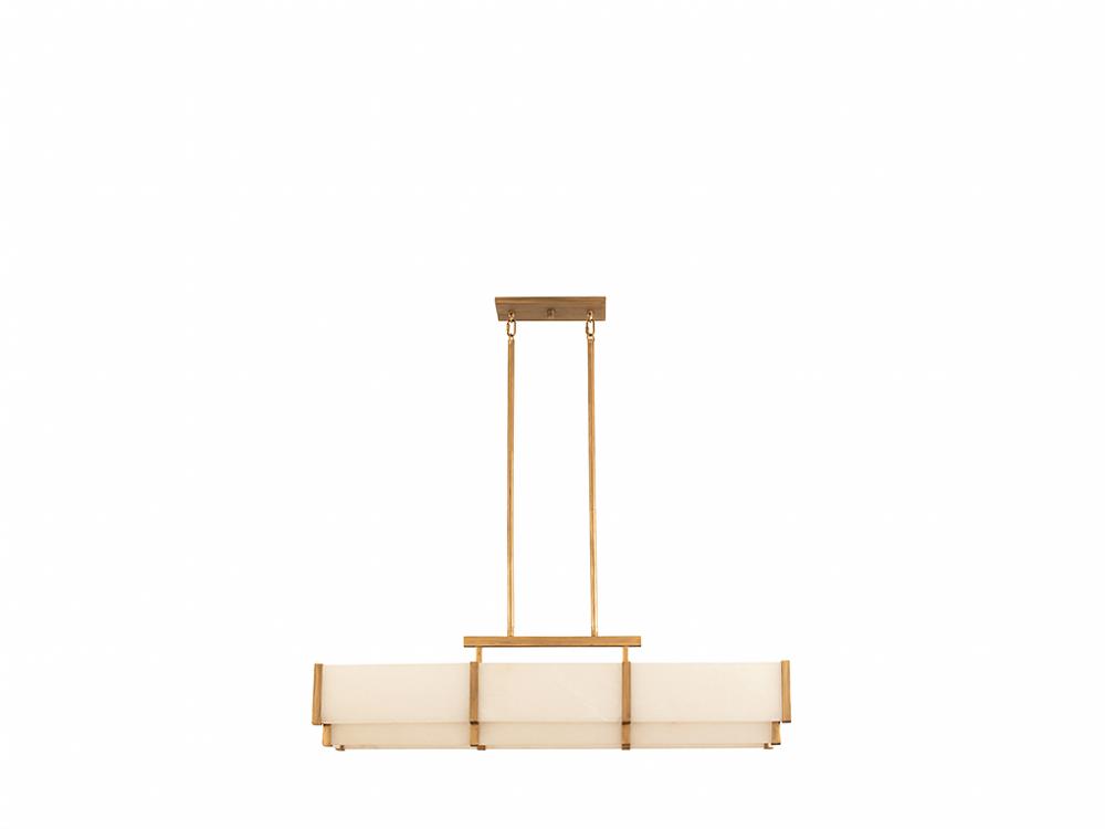 Art Deco style gets an organic twist in the Savoy House Orleans 5-light linear pendant. Panes of natural alabaster obscure the lights for a bright yet comfortable glow and are held in a jewelry-like frame that is finished in Distressed Gold. Orleans is 11" in height, 44.38" in length and 8" in width. It uses 5 candelabra size bulbs of up to 60 watts each (bulbs not included). Comes with eight 12" downrods and two 6" downrods.