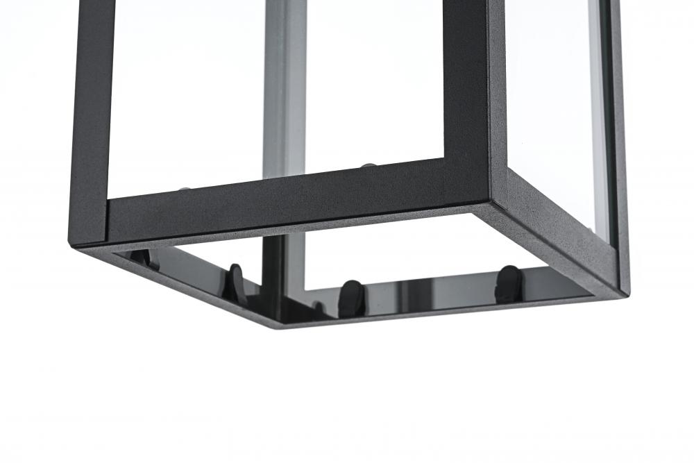 The pendant is surrounded by four clear glass panels that maximize light output, creating an inviting ambiance for your outdoor area.