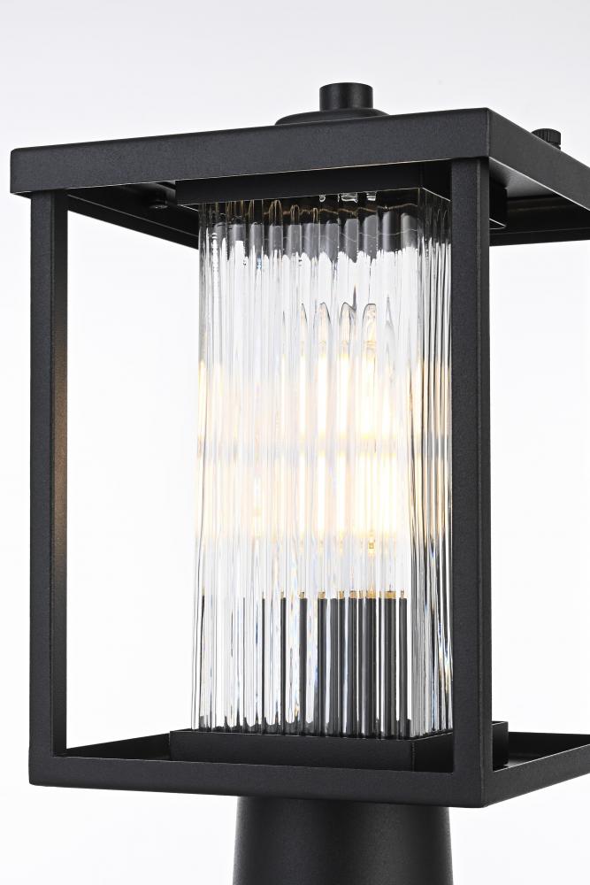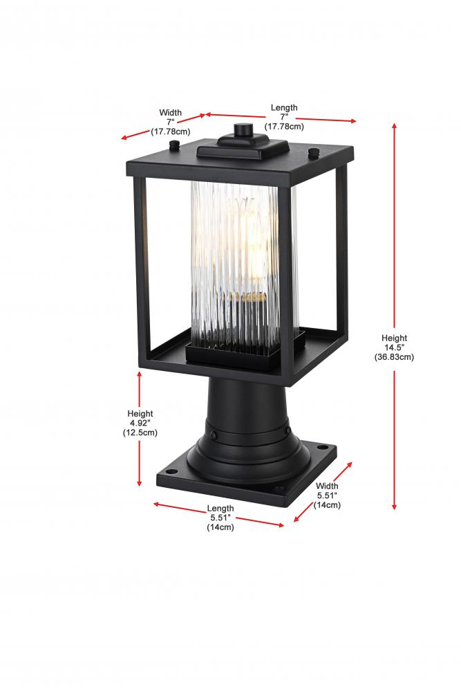 Introduce a touch of timeless charm to your outdoor spaces with this striking outdoor post light. Constructed from high-quality iron and featuring a clear fluted glass encasement, this fixture embodies both durability and refined beauty. The tall, rectangular frame is defined by its geometric, clean lines, giving the light an effortlessly sophisticated presence in any landscape setting. The textured glass panels add a sense of depth and dimension, providing a dazzling glow when lit. Designed with an E26 socket, this post light accommodates a wide range of bulbs, making it versatile enough to match the ambiance you desire. Whether framing your driveway, flanking a garden pathway, or placed on a pillar, this light's robust yet stylish design is ideal for illuminating your outdoor environment with a warm, inviting glow.