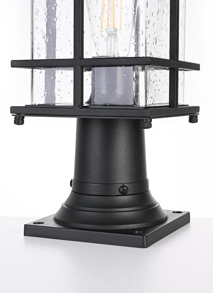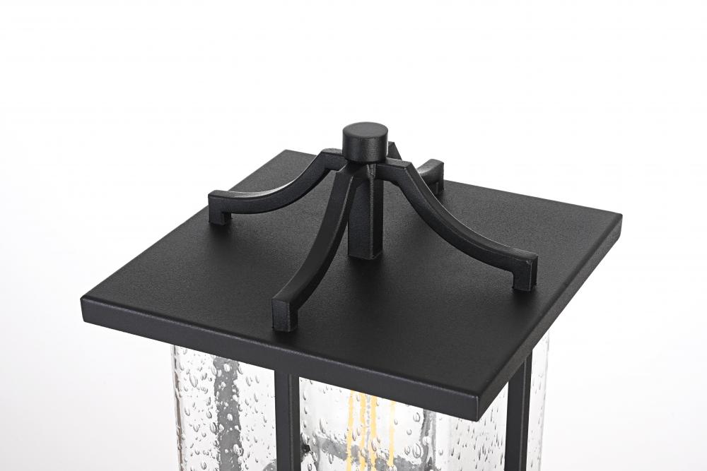 Crafted with an eye-catching blend of iron and clear seeded glass, this outdoor post light adds a modern yet timeless touch to any exterior wall, blending seamlessly with a variety of architectural styles.