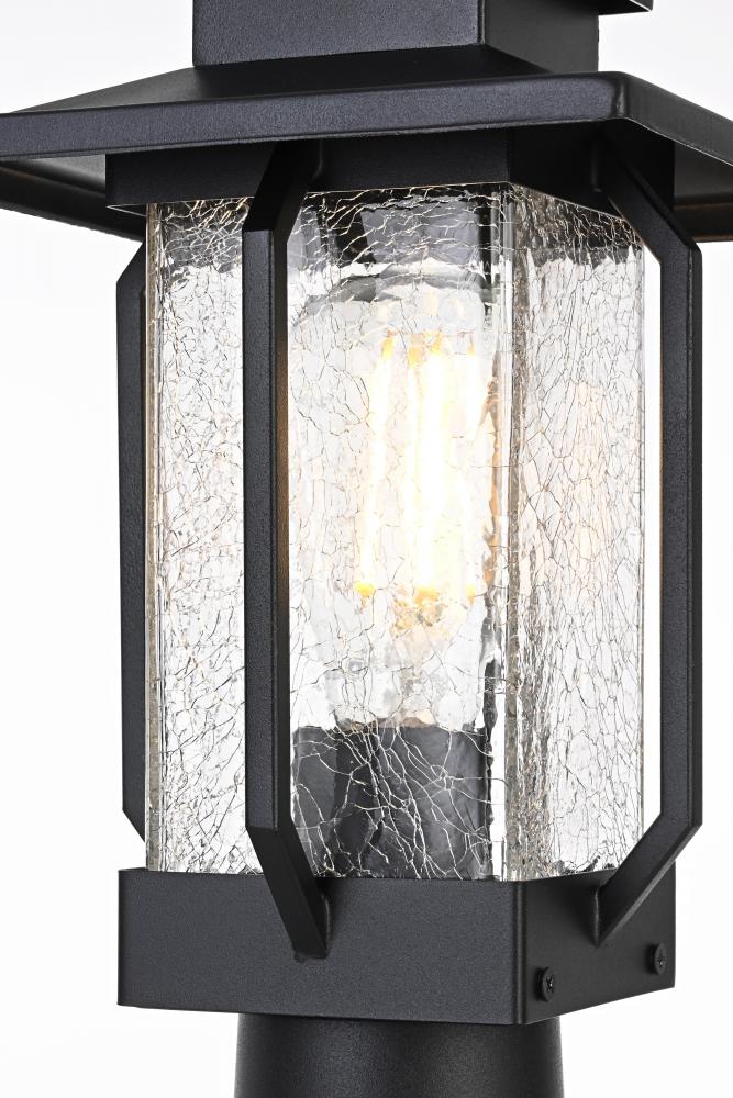 Transform your home's exterior with this charming craftsman-style wall post light. Built with a durable iron frame and finished in a sleek matte black, this light adds character to your entryways, patios, or porches. The crackle glass panels create a unique, diffused lighting effect, giving your home a warm and welcoming glow. Designed to endure outdoor conditions, this post light is both a stylish and practical addition to your outdoor space, ensuring a well-lit, safe, and attractive home environment.
