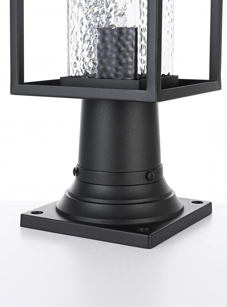 This outdoor post light combines durability with a touch of character, perfectly suited to elevate your exterior space. The iron frame adds strength and durability, while the hammered glass creates a beautiful, diffused lighting effect, enhancing the warm glow of the bulb. The sharp angles and clean lines of the iron frame provide a modern touch that blends seamlessly with the rustic textures of the glass, creating a versatile look that complements a wide range of styles.