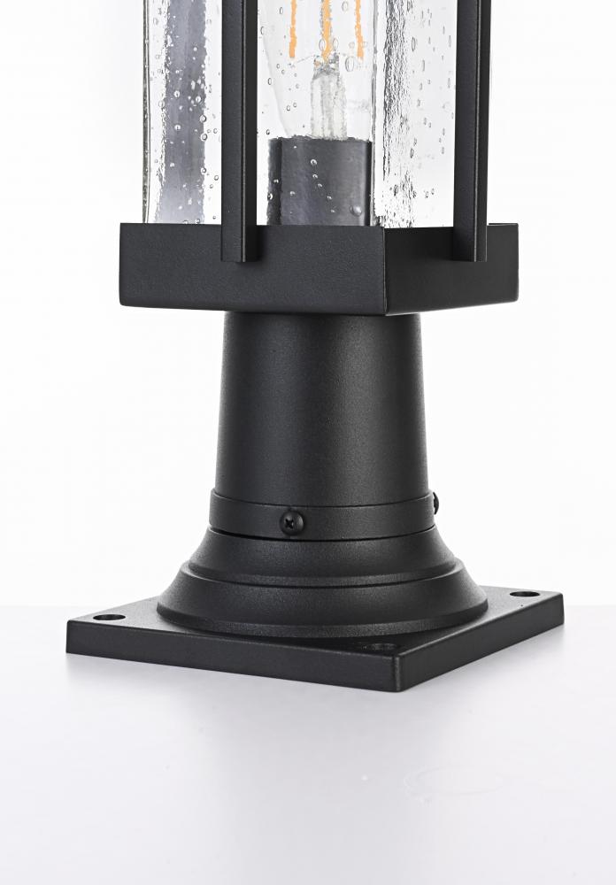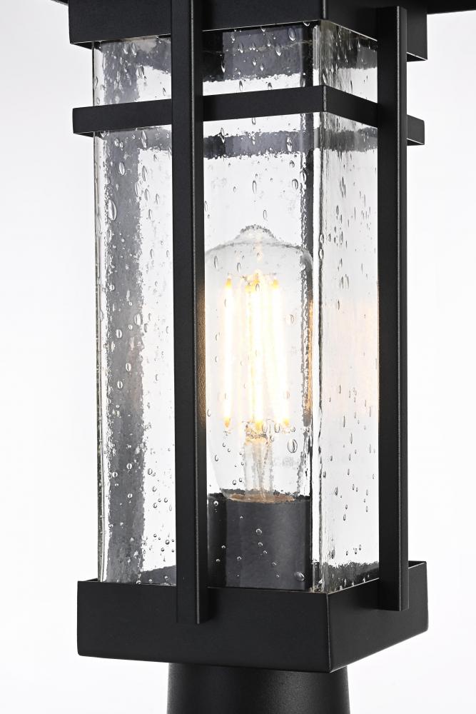 This outdoor post light is a perfect blend of durability and style, making it a standout piece for any exterior wall. Crafted from high-quality iron and clear seeded glass, the light exhibits a timeless lantern silhouette with crisp lines and an attention to detail that provides a fresh twist on classic outdoor lighting. The iron frame with a sleek black finish adds a robust and contemporary touch, while the clear seeded glass creates a warm and inviting glow, enhancing the overall ambiance of any outdoor space. Featuring an E26 base for versatile bulb options, this light is as functional as it is beautiful.