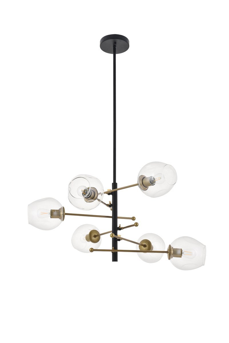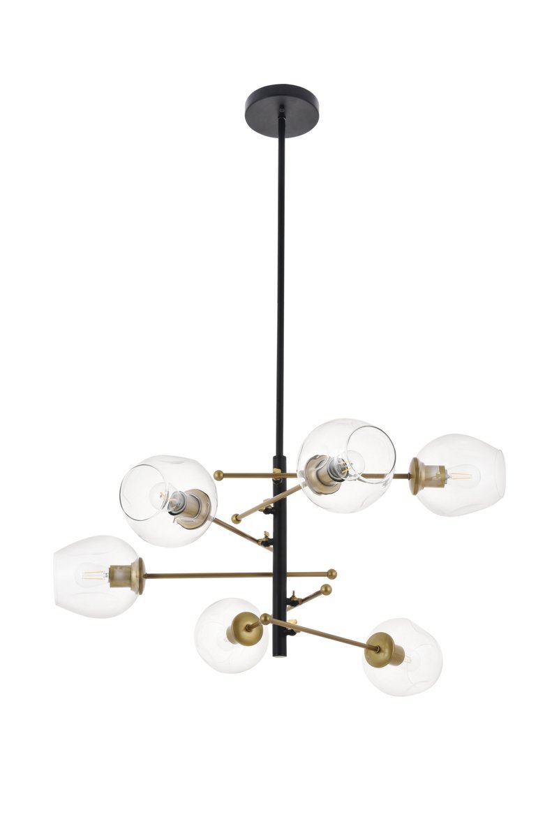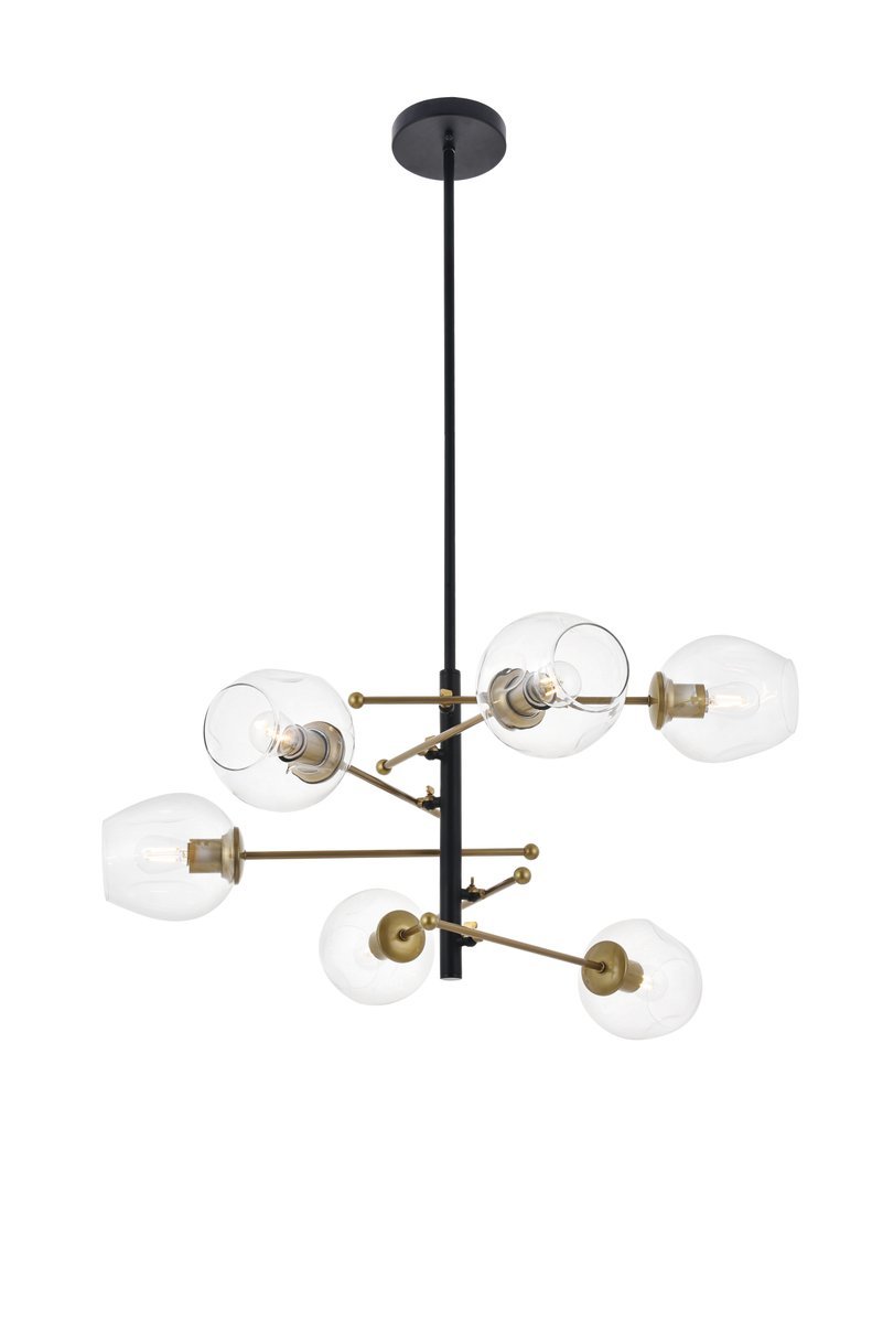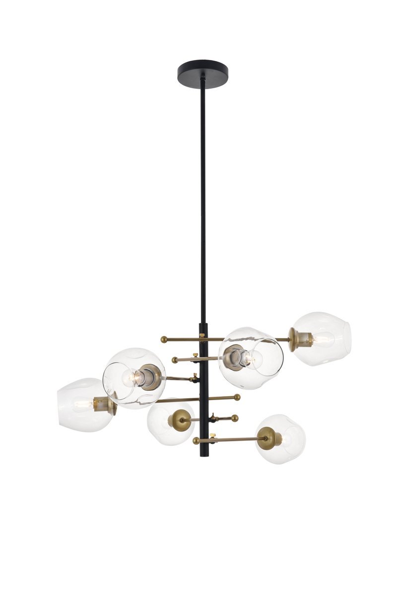 Elegant LD5053D32BRB - Paragon 6 light Matte Black and Brass Pendant