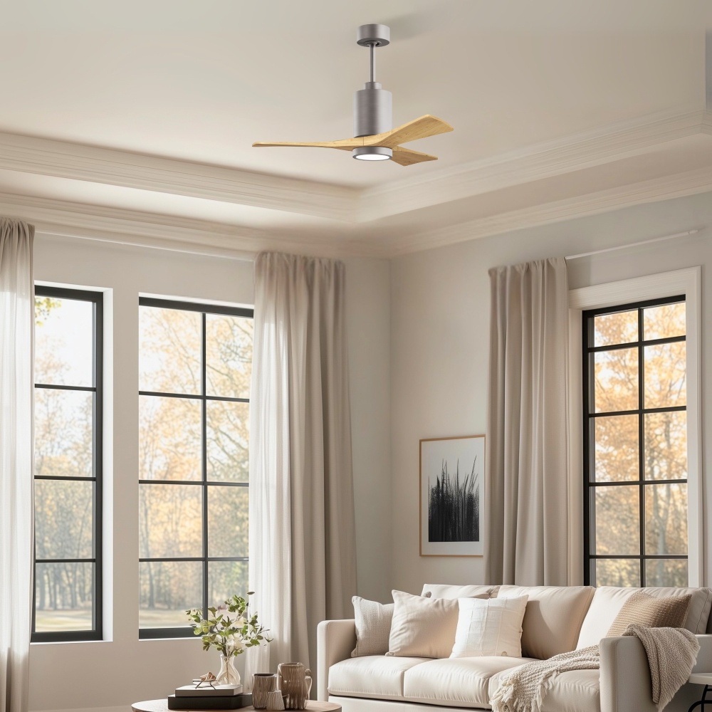 A complement to any commercial or residential space, the Patricia 3 seamlessly combines innovation with simple, refined design. Its elegant aesthetic belies its robust construction. Solid wood blades revolve around a balanced, cylindrical DC motor housing. Air is circulated efficiently with barely more than a whisper. An eco-conscious 5CCT LED color changing light kit completes the package, making Patricia 3 sophisticated, efficient and green.
