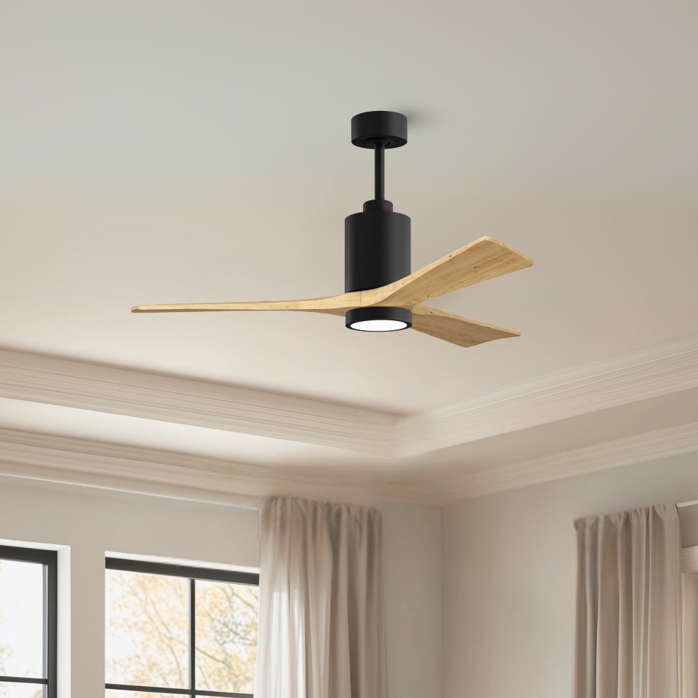 A complement to any commercial or residential space, the Patricia 3 seamlessly combines innovation with simple, refined design. Its elegant aesthetic belies its robust construction. Solid wood blades revolve around a balanced, cylindrical DC motor housing. Air is circulated efficiently with barely more than a whisper. An eco-conscious 5CCT LED color changing light kit completes the package, making Patricia 3 sophisticated, efficient and green.