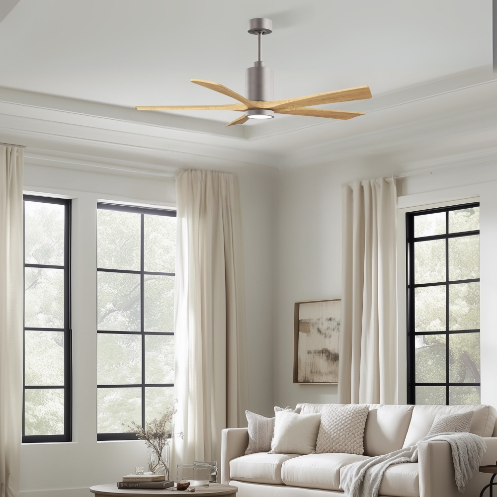 A complement to any commercial or residential space, the Patricia 5 seamlessly combines innovation with simple, refined design. Its elegant aesthetic belies its robust construction. Solid wood blades revolve around a balanced, cylindrical DC motor housing. Air is circulated efficiently with barely more than a whisper. An eco-conscious LED light kit completes the package, making Patricia 5 sophisticated, efficient and green.