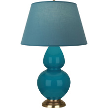 Peacock Glazed Ceramic with Antique Natural Brass Finished Accents Double Gourd Table Lamp with Tea Green Fabric Shade with Taupe Lining - Our Double Gourd collection features a simple but gracefully curving silhouette. Available in a wide array of vibrant colors and several different base finishes.