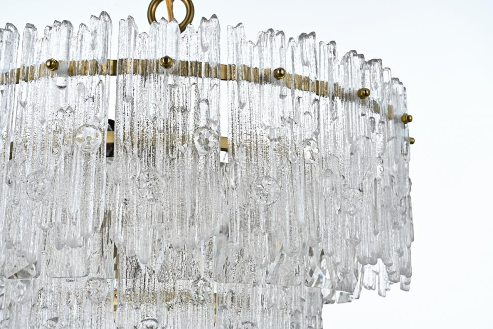 Elevate your space with this stunning 15-inch crystal chandelier, boasting four tiers and adorned with a captivating snow flower glass overlay.