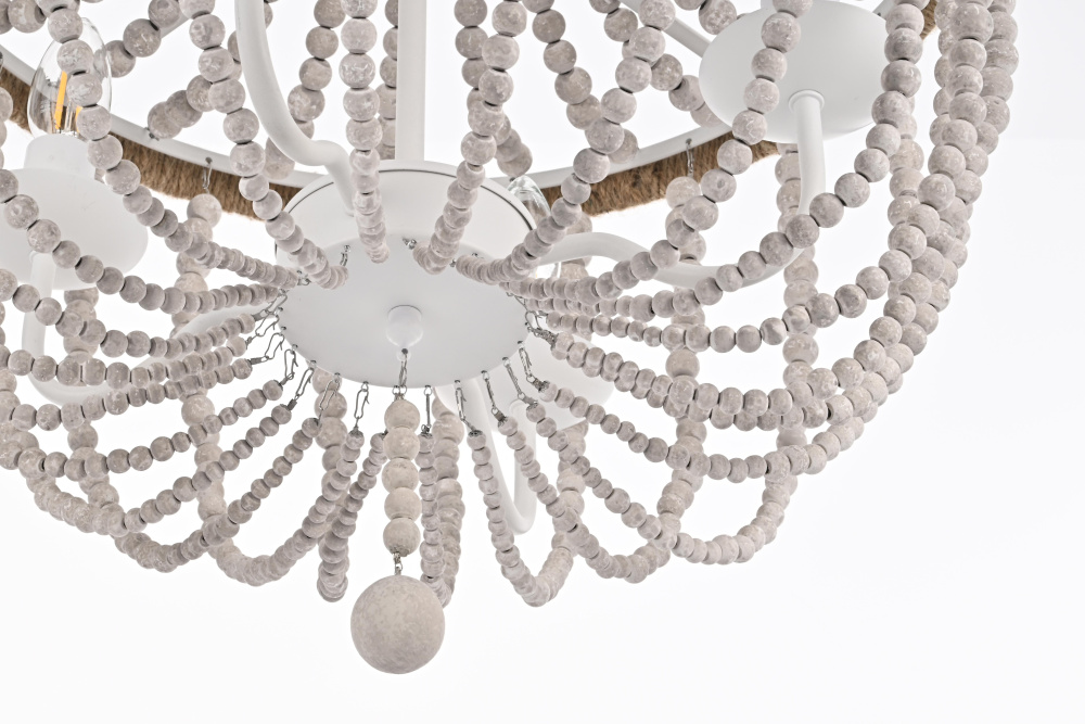 Timeless elegance meets coastal charm as weathered white wooden beads create a serene, sophisticated presence perfect for refined spaces.