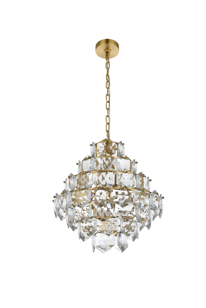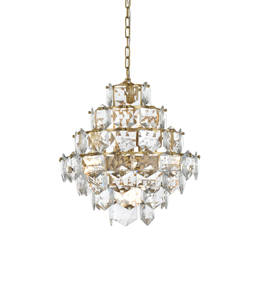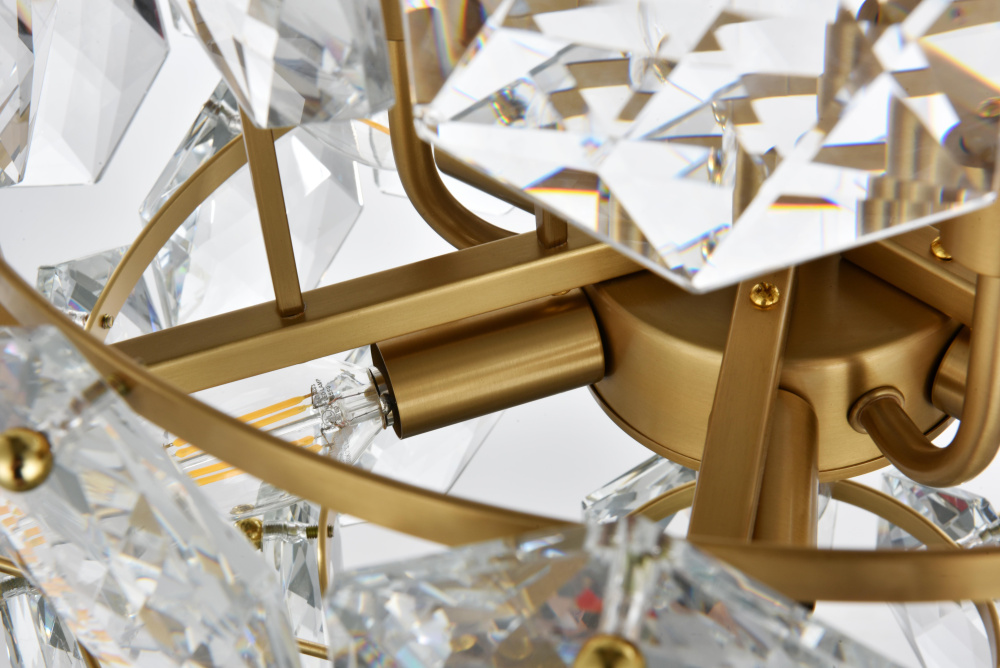 Adorned with six-sided, precision-cut crystals, each tier cascades down to create a radiant play of light and dimension.