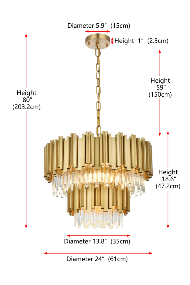 Transform your space with this stunning chandelier, a dynamic fusion of iron and staggered clear glass that exudes contemporary style and architectural artistry. The layered glass refracts light beautifully, creating a radiant display of glowing brilliance that fills the room with warmth and sophistication. The staggered arrangement of the metal and glass adds depth and dimension, making this chandelier an eye-catching centerpiece. Fully dimmable, it allows you to adjust the ambiance to suit any mood, from bright and vibrant to soft and inviting. Available in satin gold for a warm, luxurious vibe, chrome for sleek modernity, and black for bold, dramatic contrast, this fixture comes in various sizes to perfectly complement any space. Complete with a matching canopy, it’s an ideal choice for dining rooms, living rooms, or offices. Add a touch of refined geometry to your décor and bask in the brilliance of this radiant desi