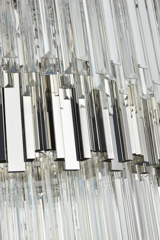 The staggered clear glass pieces add depth and dimension, creating a layered effect that enhances the visual appeal.