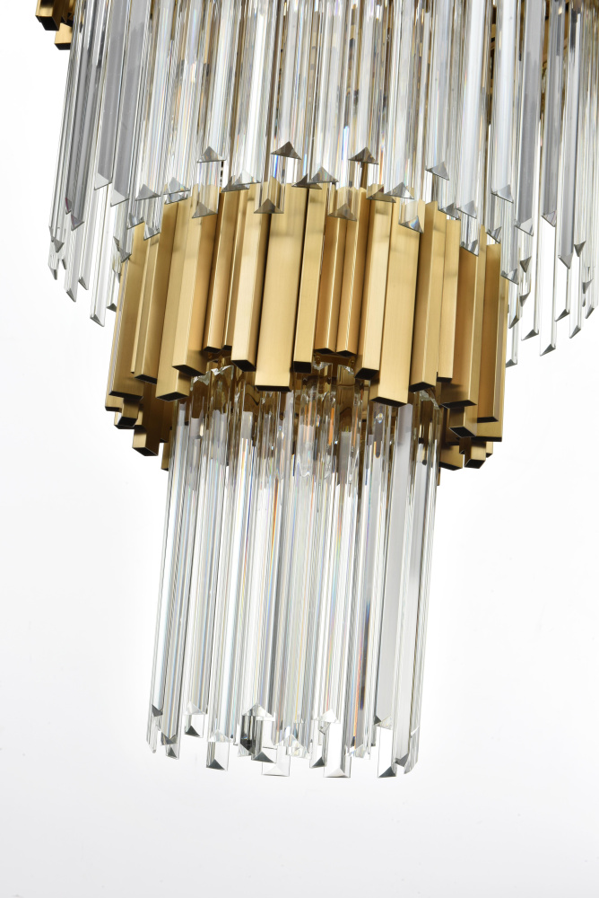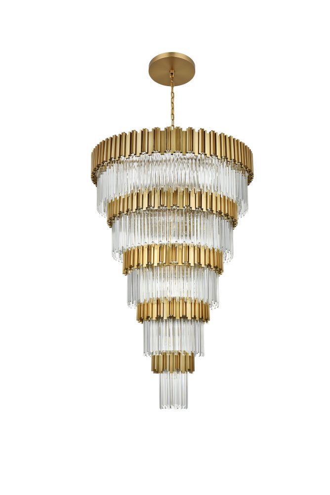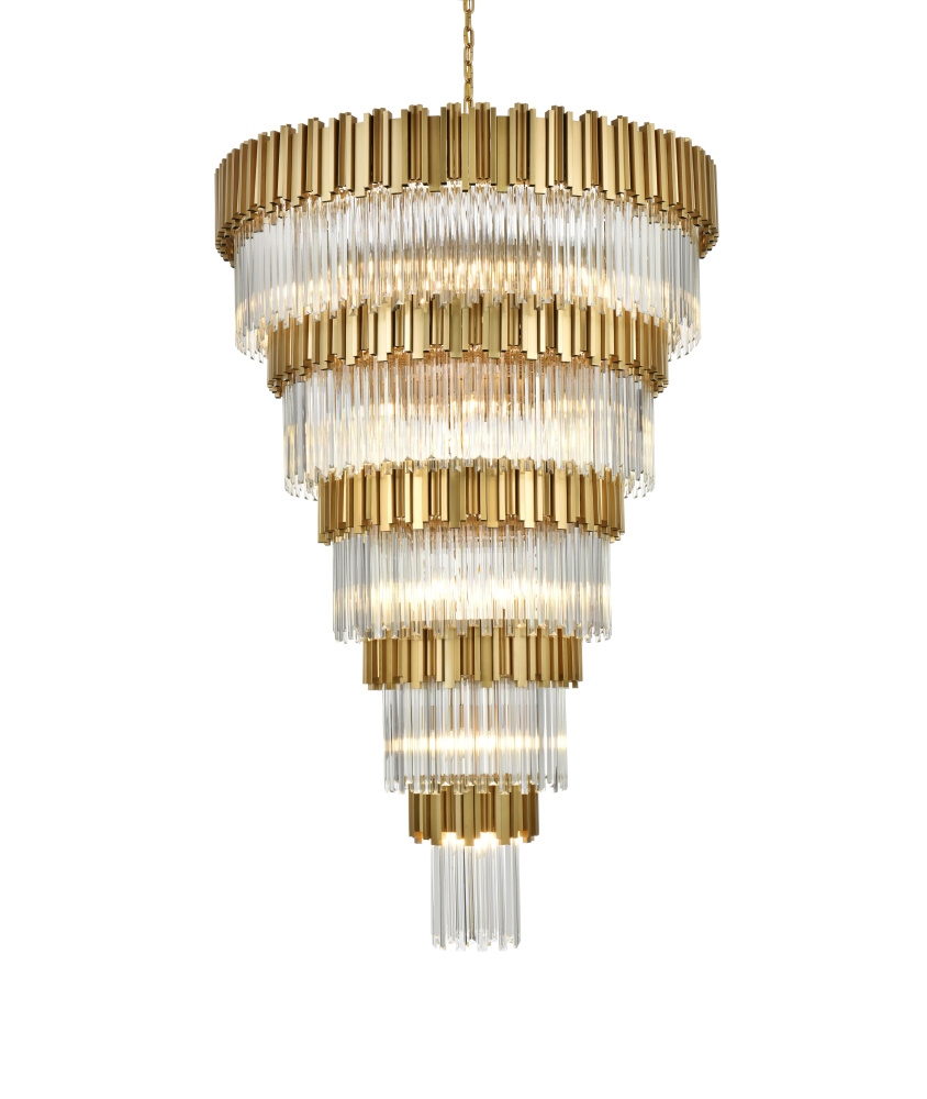 Transform your space with this stunning chandelier, a dynamic fusion of iron and staggered clear glass that exudes contemporary style and architectural artistry. The layered glass refracts light beautifully, creating a radiant display of glowing brilliance that fills the room with warmth and sophistication. The staggered arrangement of the metal and glass adds depth and dimension, making this chandelier an eye-catching centerpiece. Fully dimmable, it allows you to adjust the ambiance to suit any mood, from bright and vibrant to soft and inviting. Available in satin gold for a warm, luxurious vibe, chrome for sleek modernity, and black for bold, dramatic contrast, this fixture comes in various sizes to perfectly complement any space. Complete with a matching canopy, it’s an ideal choice for dining rooms, living rooms, or offices. Add a touch of refined geometry to your décor and bask in the brilliance of this radiant desi