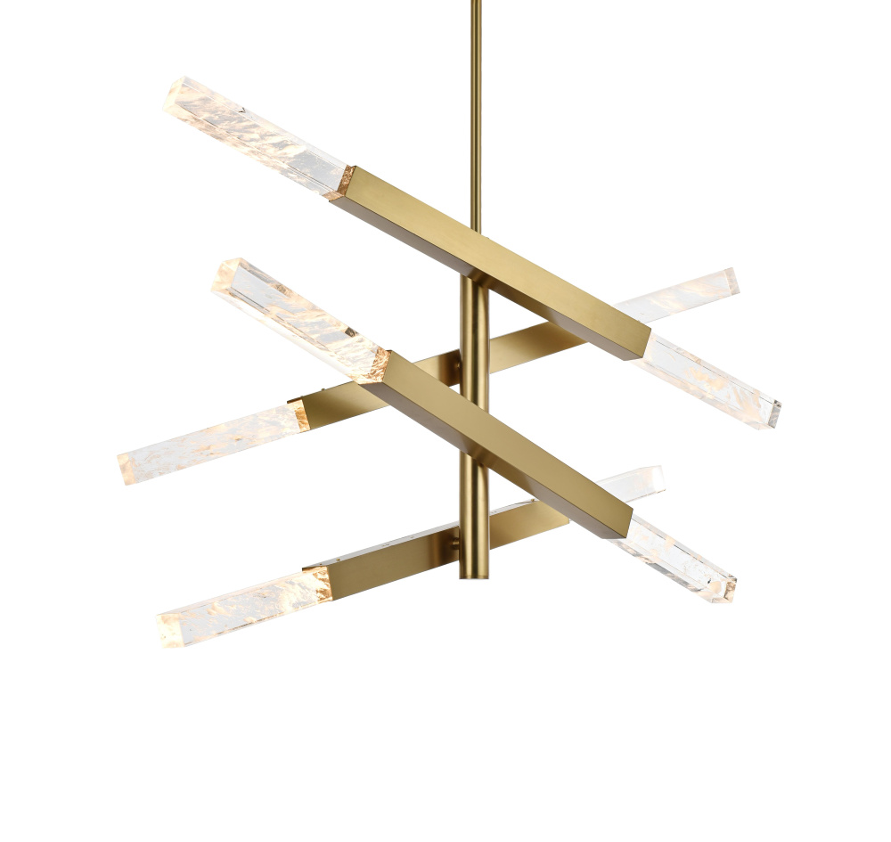 The satin gold finish offers a warm, luxurious touch that beautifully complements the shimmering crystal bars.