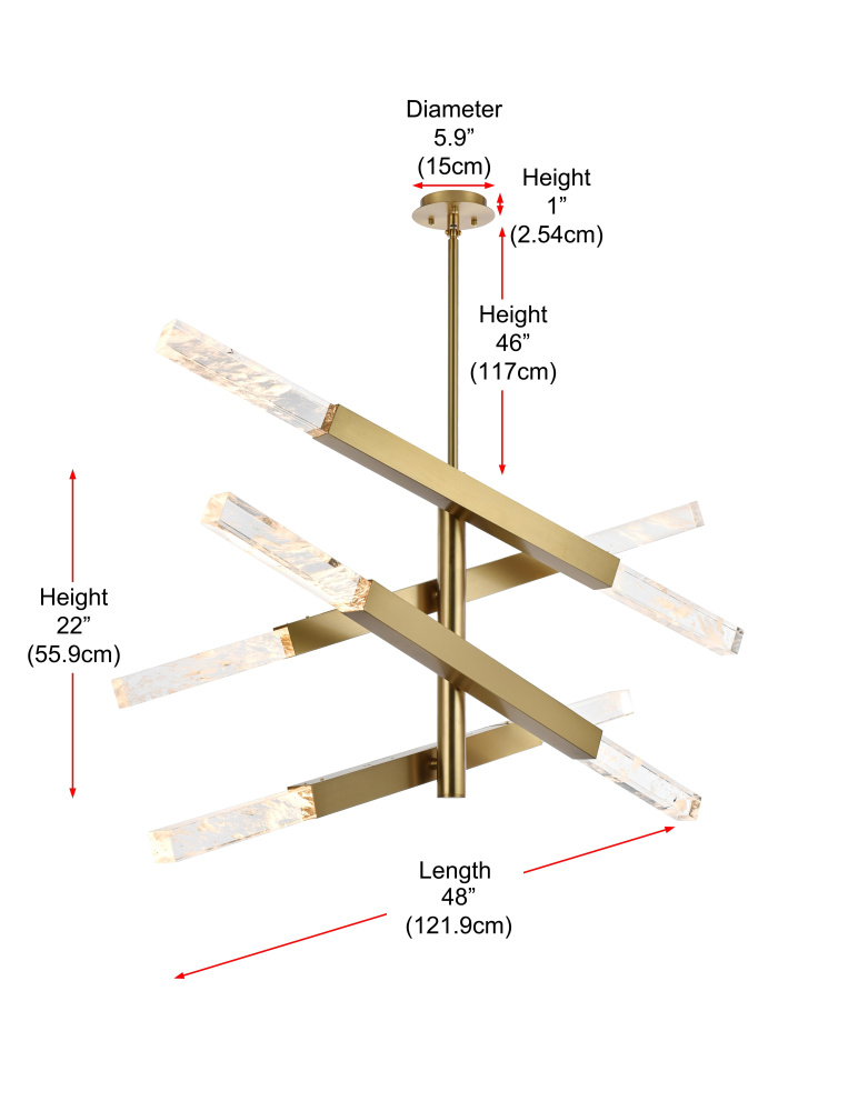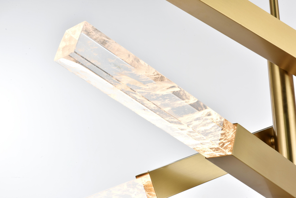 The 4-bar pendant light is a bold statement of modern design, blending striking geometry with the organic beauty of solid clear crystal bars. Ethereal white clouds float gracefully within the crystal, each one a unique formation shaped over millennia. These wispy inclusions create a dreamlike landscape, evoking a sense of serenity and wonder as light refracts softly through the crystalline forms. Each bar is fully adjustable, allowing you to create your own unique angles and design. Perfect for mid-sized spaces, this versatile fixture complements dining areas, living rooms, and offices with its dynamic presence. Includes dimmable 6.5W light bulbs (3000K, 480 lumens) and comes with a matching canopy for easy installation.