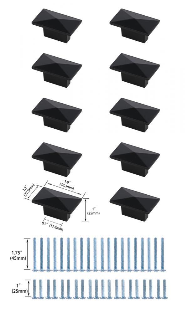 Perry 2" Matte Black Rectangle Knob Multipack (Set of 10)
