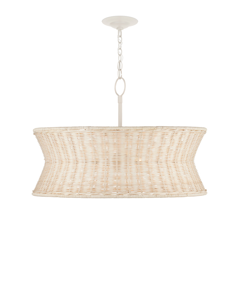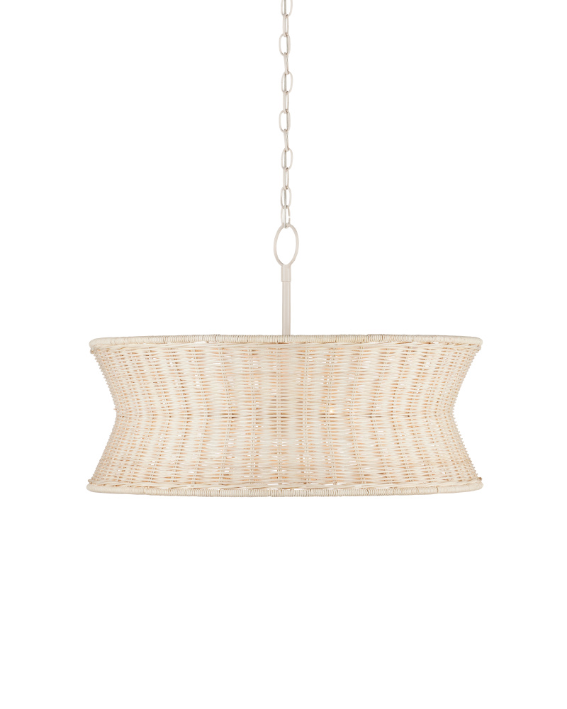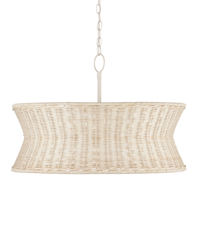 Lightening the profile of the Phebe Small Chandelier is the vanilla finish on the hardware and the bleached wicker shade. This beige chandelier exemplifies the hallmark of artisanal fixtures, with a design that highlights a keen understanding of finely woven natural materials. Adjustable from 26" to 93.5" with use of included chain/rod kit/cable. If your space calls for a longer drop, additional chain/rods/cable is available for purchase.