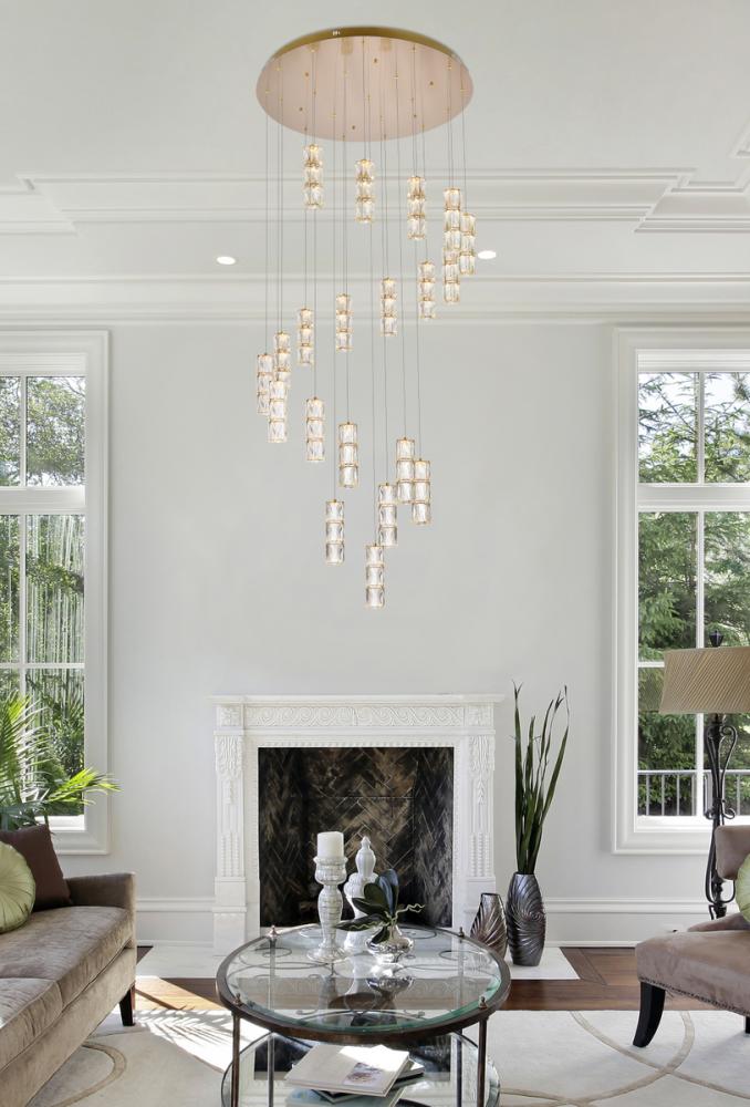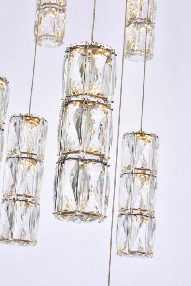 This chandelier is specially designed to be used on sloped ceilings, allowing you to install it in rooms with angled or vaulted ceilings. It ensures that you can enjoy the stunning crystal faceted design and warm LED lighting in any area of your home.