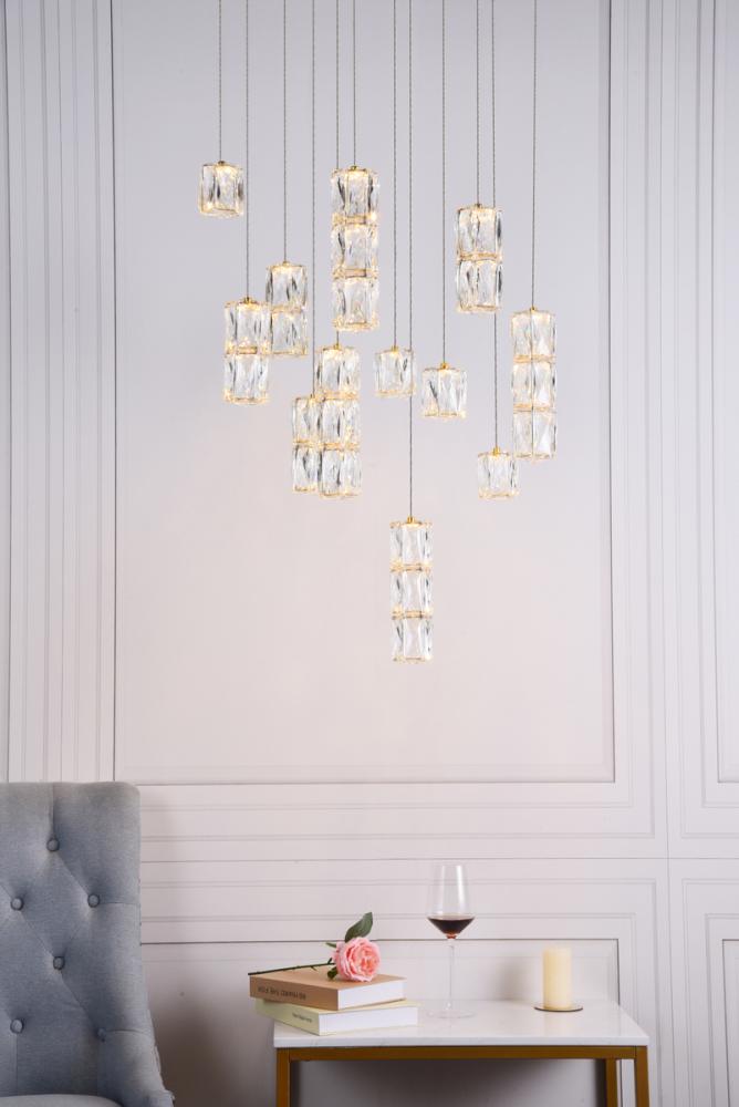 The Polaris collection is the epitome of "cool" in lighting, because each of the fixtures has rectangular, elegant-cut crystals that look like ice cubes, gracefully suspended from a stainless-steel base with a bright gold finish. Designed for rooms with higher ceilings, these fixtures are definitely stylistic attention-getters.