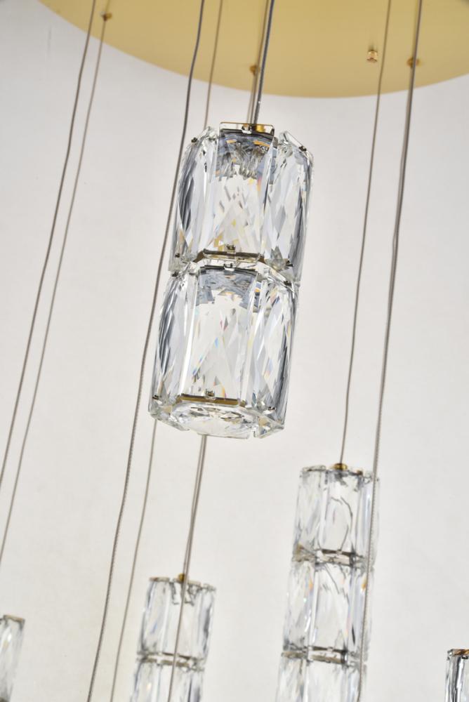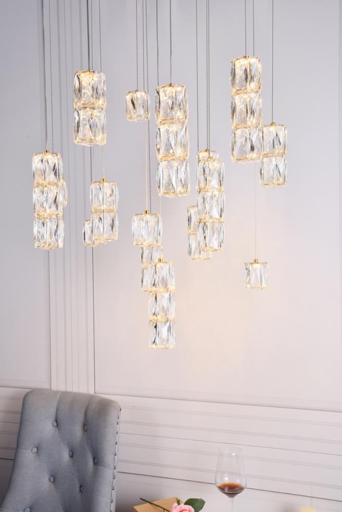 The Polaris collection is the epitome of "cool" in lighting, because each of the fixtures has rectangular, elegant-cut crystals that look like ice cubes, gracefully suspended from a stainless-steel base with a bright gold finish. Designed for rooms with higher ceilings, these fixtures are definitely stylistic attention-getters.