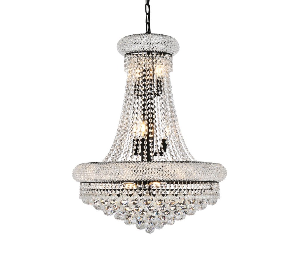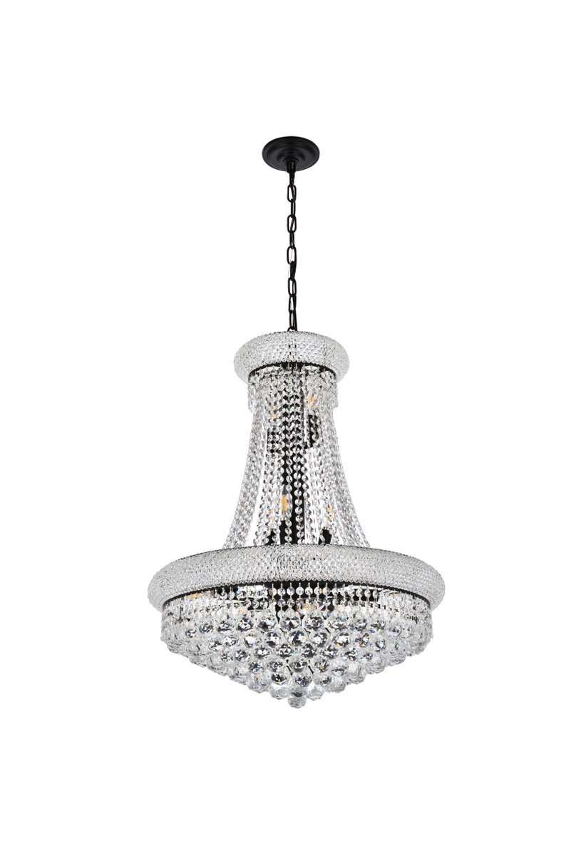 "Primo" means "first" in Italian, and the Primo collection lives up to its name as the top choice in classic, dramatic lighting. The symmetrical bell-shaped design offers variations in Single, double, and triple tiers, with each canopy encrusted with multiple layers of round crystals. Delicate strands of crystals flare out from each canopy, ending in a profusion of crystal octagons and balls in the bottom hemisphere base.