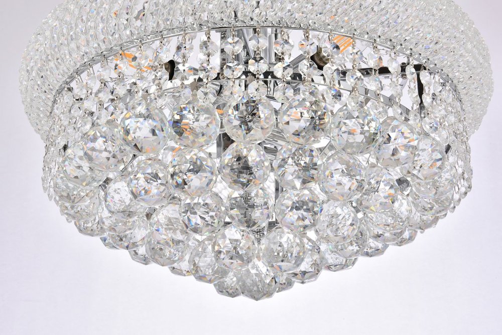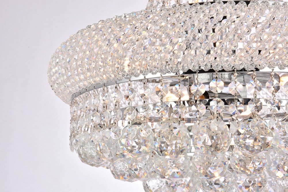"Primo" means "first" in Italian, and the Primo collection lives up to its name as the top choice in classic, dramatic lighting. The symmetrical bell-shaped design offers variations in Single, double, and triple tiers, with each canopy encrusted with multiple layers of round crystals. Delicate strands of crystals flare out from each canopy, ending in a profusion of crystal octagons and balls in the bottom hemisphere base.