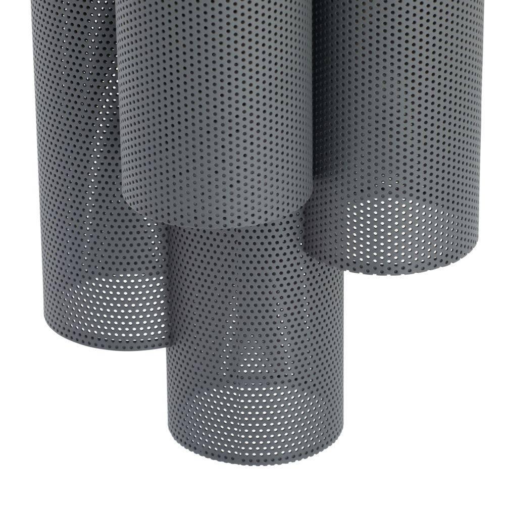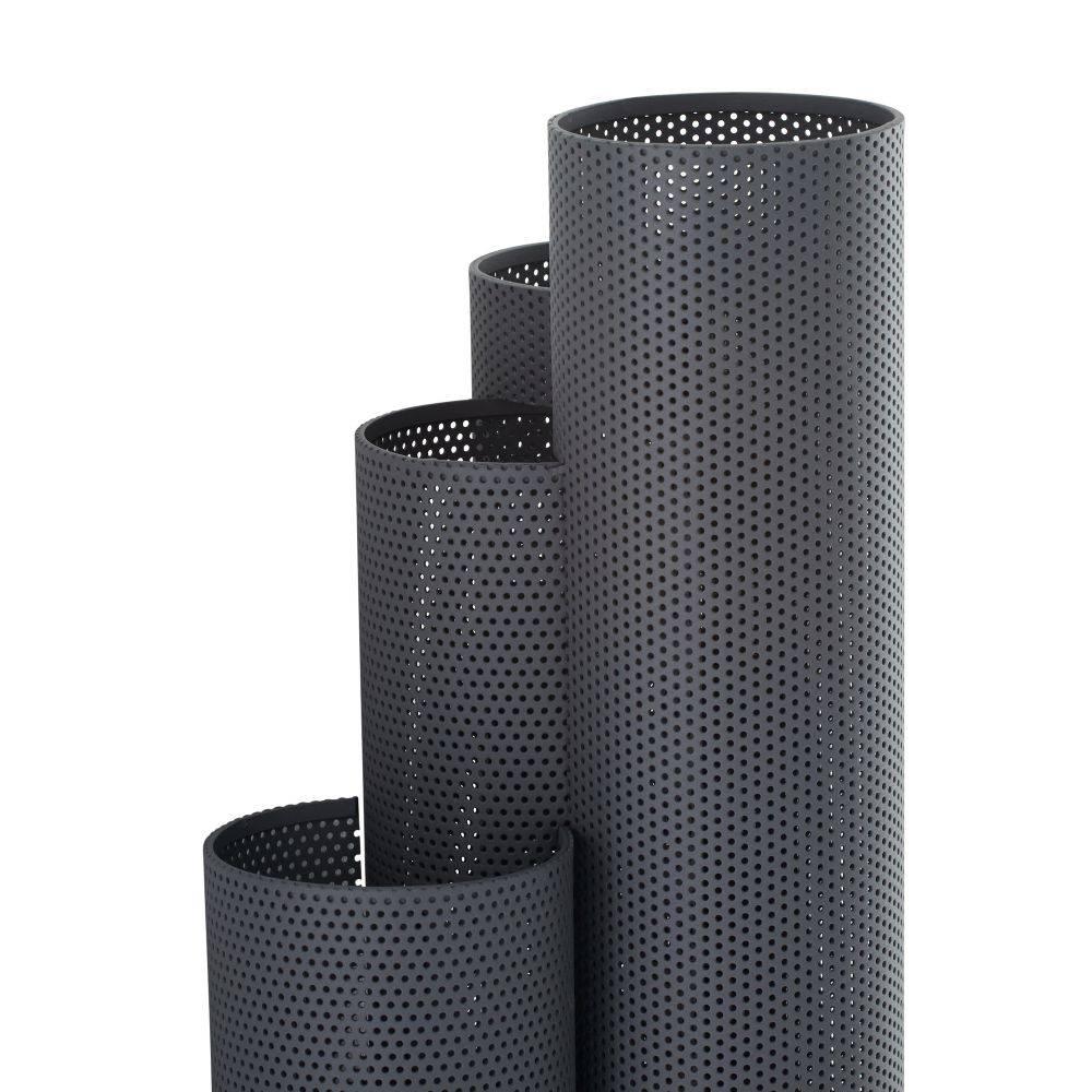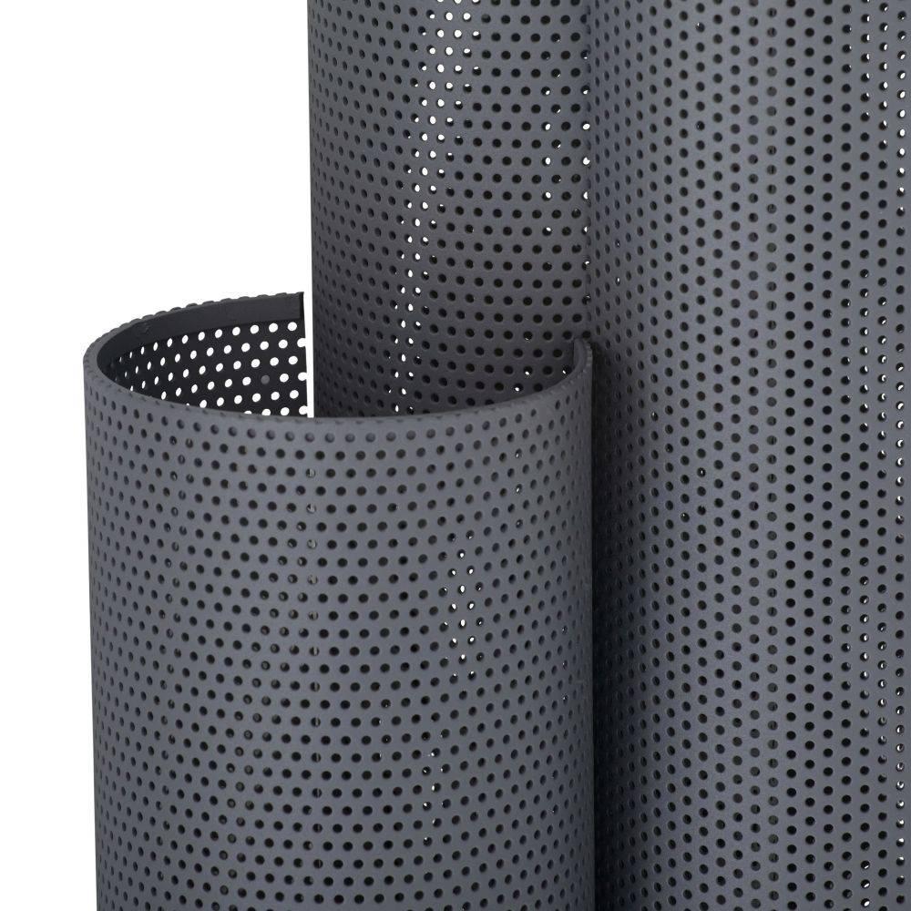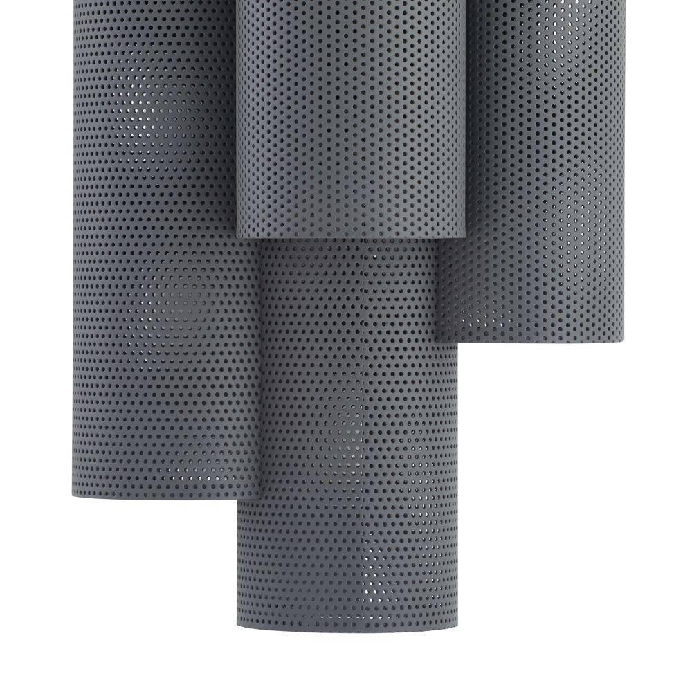 The Punch Oversized Outdoor Sconce features a trio of perforated marine grade aged graphite steel cylinders to illuminate and elevate exterior spaces. Each of the cylinders contains bi-directional lights, to cast an upward and downward glow. A protective coating helps withstand the elements.