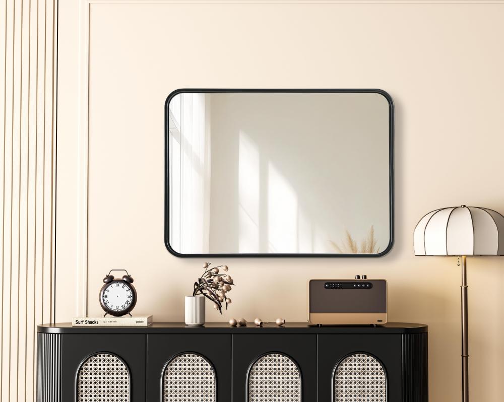 Elevate your home decor with this versatile wall mirror that combines functionality and modern design. Made from a sturdy combination of MDF, iron, and reflective mirror glass, this piece is built to last while adding a polished finish to any room. The extended depth of the frame not only provides a striking dimensional effect but also ensures the mirror’s presence commands attention as a focal point. Whether you're decorating a bedroom, bathroom, or entryway, its diverse shapes—including rectangle and square—offer plenty of options to suit your style. The hand-painted black, brass, or silver finish brings a subtle yet striking touch, complemented by rounded corners for a smooth and contemporary aesthetic. with four metal inset hangers, it's ready to hang vertically or horizontally, ensuring flexibility for any layout. Available in multiple sizes, this mirror is a statement piece that blends seamlessly into both modern and classic spaces.