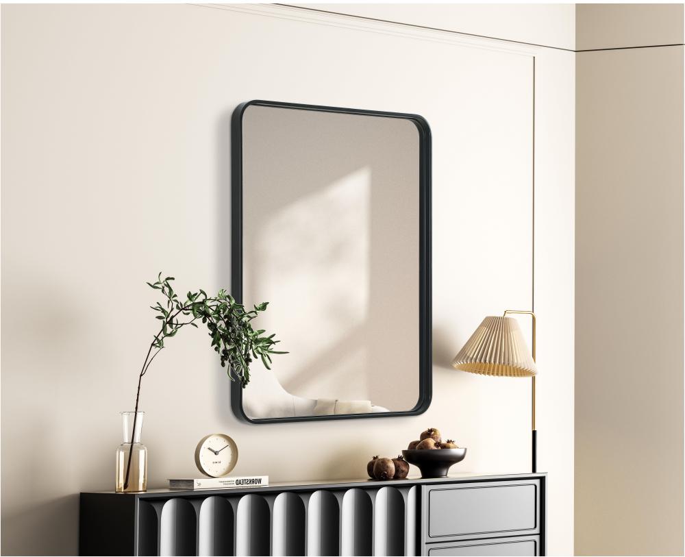 Elevate your home decor with this versatile wall mirror that combines functionality and modern design. Made from a sturdy combination of MDF, iron, and reflective mirror glass, this piece is built to last while adding a polished finish to any room. The extended depth of the frame not only provides a striking dimensional effect but also ensures the mirror’s presence commands attention as a focal point. Whether you're decorating a bedroom, bathroom, or entryway, its diverse shapes—including rectangle and square—offer plenty of options to suit your style. The hand-painted black, brass, or silver finish brings a subtle yet striking touch, complemented by rounded corners for a smooth and contemporary aesthetic. with four metal inset hangers, it's ready to hang vertically or horizontally, ensuring flexibility for any layout. Available in multiple sizes, this mirror is a statement piece that blends seamlessly into both modern and classic spaces.