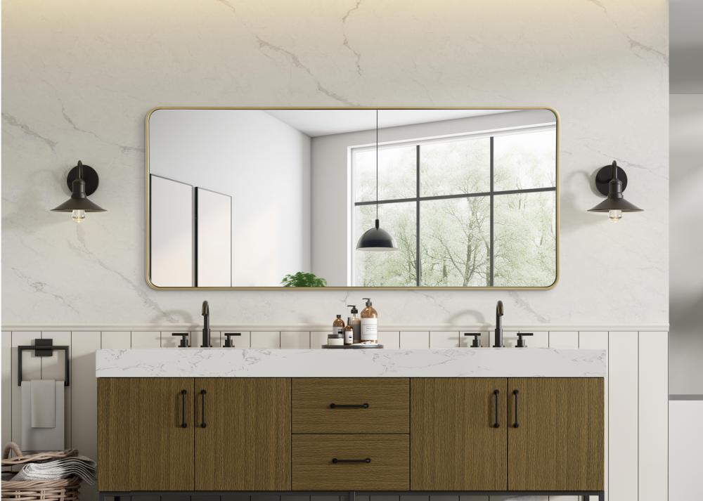 Elevate your home decor with this versatile wall mirror that combines functionality and modern design. Made from a sturdy combination of MDF, iron, and reflective mirror glass, this piece is built to last while adding a polished finish to any room. The extended depth of the frame not only provides a striking dimensional effect but also ensures the mirror’s presence commands attention as a focal point. Whether you're decorating a bedroom, bathroom, or entryway, its diverse shapes—including rectangle and square—offer plenty of options to suit your style. The hand-painted black, brass, or silver finish brings a subtle yet striking touch, complemented by rounded corners for a smooth and contemporary aesthetic. with four metal inset hangers, it's ready to hang vertically or horizontally, ensuring flexibility for any layout. Available in multiple sizes, this mirror is a statement piece that blends seamlessly into both modern and classic spaces.