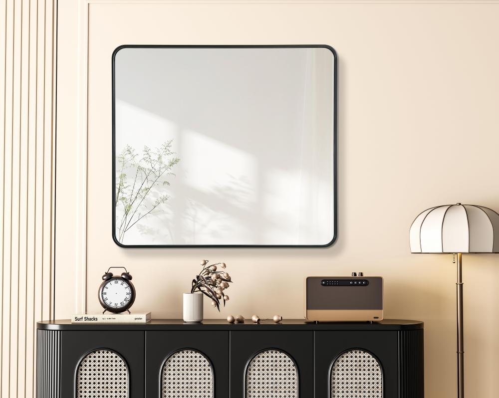 Elevate your home decor with this versatile wall mirror that combines functionality and modern design. Made from a sturdy combination of MDF, iron, and reflective mirror glass, this piece is built to last while adding a polished finish to any room. The extended depth of the frame not only provides a striking dimensional effect but also ensures the mirror’s presence commands attention as a focal point. Whether you're decorating a bedroom, bathroom, or entryway, its diverse shapes—including rectangle and square—offer plenty of options to suit your style. The hand-painted black, brass, or silver finish brings a subtle yet striking touch, complemented by rounded corners for a smooth and contemporary aesthetic. with four metal inset hangers, it's ready to hang vertically or horizontally, ensuring flexibility for any layout. Available in multiple sizes, this mirror is a statement piece that blends seamlessly into both modern and classic spaces.