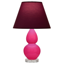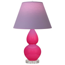 Razzle Rose Glazed Ceramic with Lucite Base Small Double Gourd Accent Lamp with Bright Blue Fabric Shade with Gray Lining - Our Double Gourd collection features a simple but gracefully curving silhouette. Available in a wide array of vibrant colors and several different base finishes.