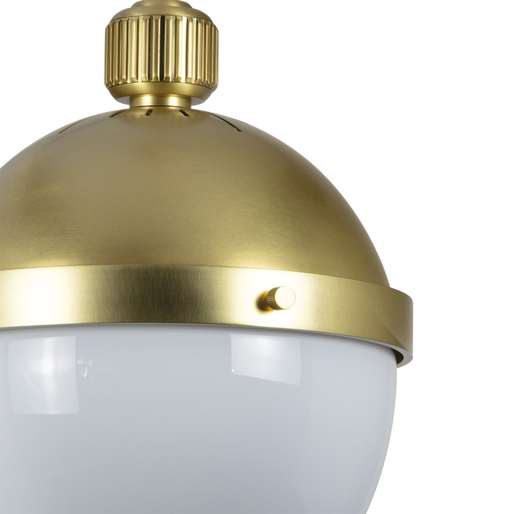Our Otis Pendant Medium blends 20th-century style with modern materials for a timeless look. Classic milk glass gives a soft, diffuse light that is gentle on your eyes. It's the perfect way to add a warm glow over a breakfast nook or kitchen island.Crafted in natural brass, it maintains its polished finish and only grows more striking with time.