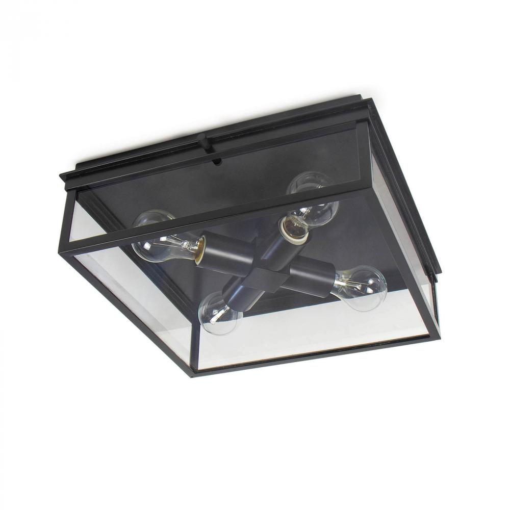 A black, powder-coated frame with classic, clean lines houses a cluster of sockets to add sophisticated illumination to your indoor or outdoor space. Note that this fixture is damp-rated but not fully outdoor safe, therefore it's best to place it in a covered area such as a covered porch, entryway, or indoors in a bathroom.