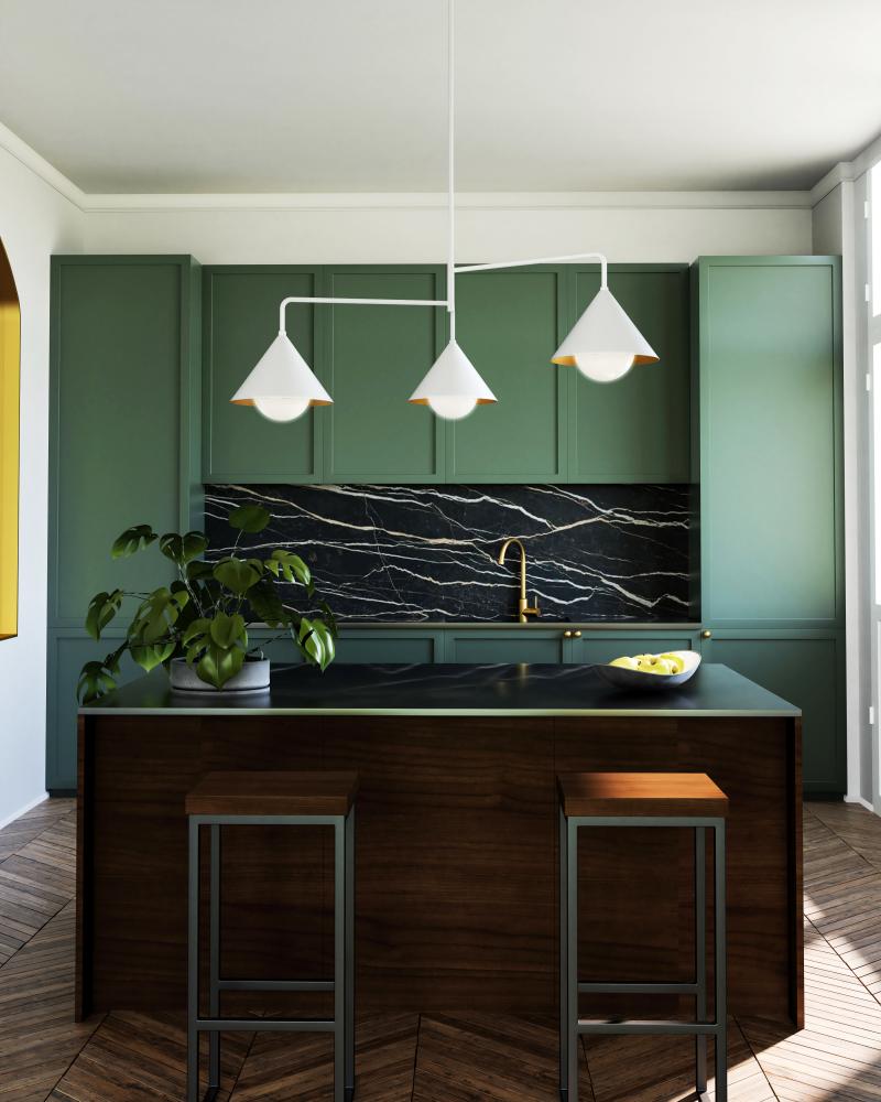 Inspired by Japanese design, the Remy Collection adds flair to simplistic design. With strong, triangular shades and details that make each piece unique, this collection stands out. Both Matte Black and Matte White finishes feature a pop of gold on the interior shade for added style. Also available in Brushed Gold