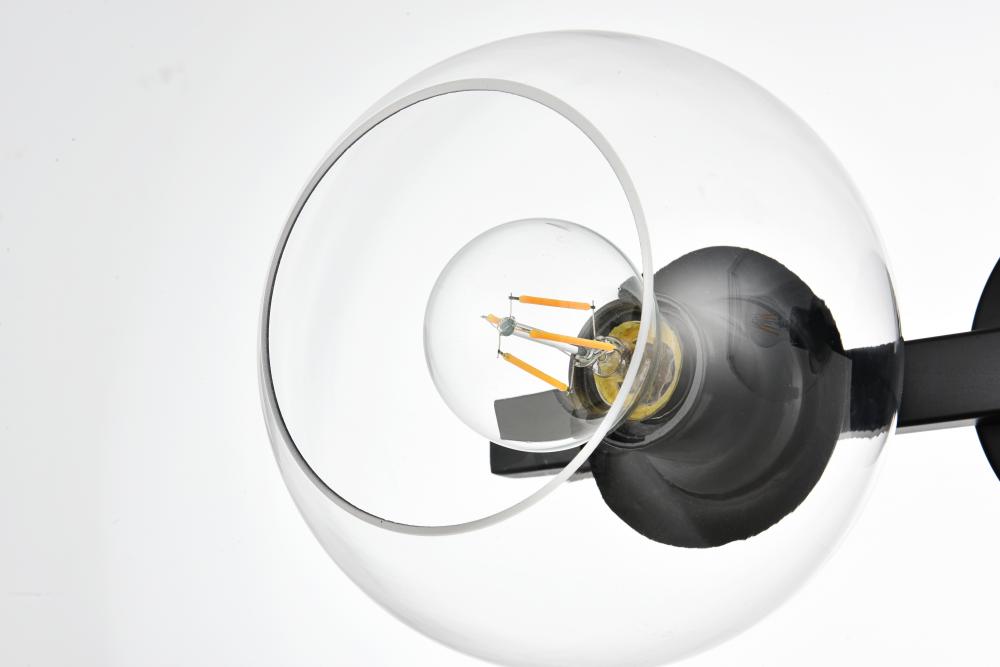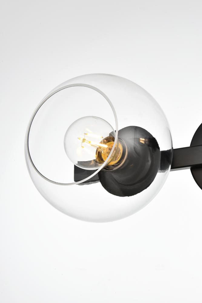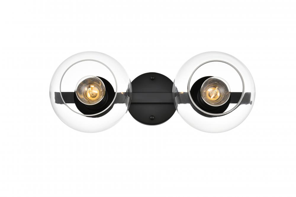 Turn up the brightness in your bathroom with this modern vanity light. This iron fixture features a streamlined silhouette and a smooth finish for a mid-century modern look. The circular backplate connects to one sleek arm design. The arm holds clear glass globe shades that accommodate medium-base bulb up to 40W, which are not included.