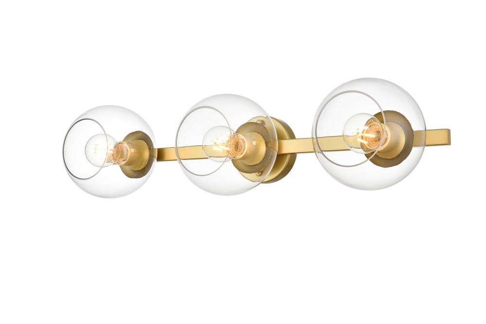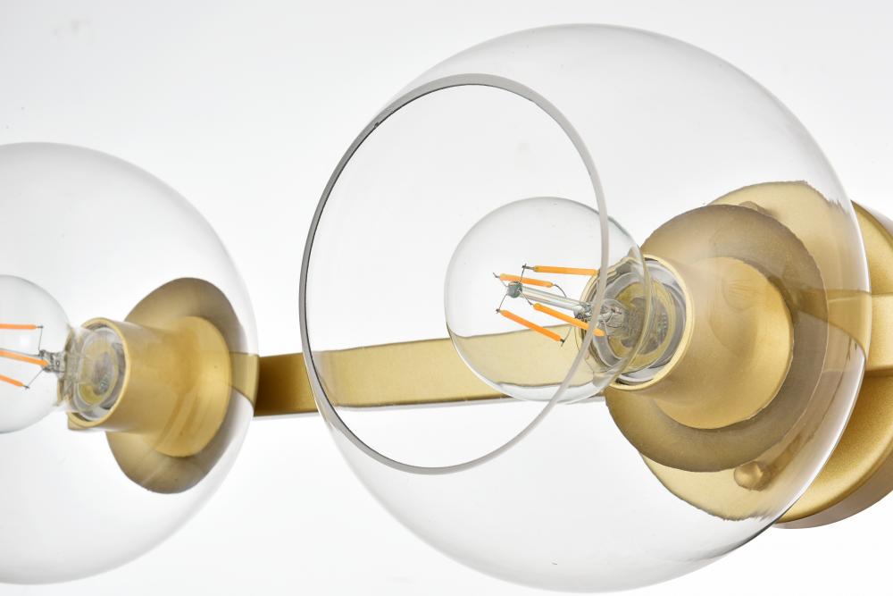 Turn up the brightness in your bathroom with this modern vanity light. This iron fixture features a streamlined silhouette and a smooth finish for a mid-century modern look. The circular backplate connects to one sleek arm design. The arm holds clear glass globe shades that accommodate medium-base bulb up to 40W, which are not included.