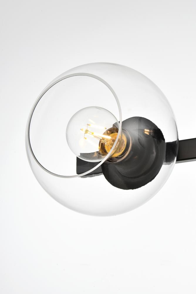 Turn up the brightness in your bathroom with this modern vanity light. This iron fixture features a streamlined silhouette and a smooth finish for a mid-century modern look. The circular backplate connects to one sleek arm design. The arm holds clear glass globe shades that accommodate medium-base bulb up to 40W, which are not included.