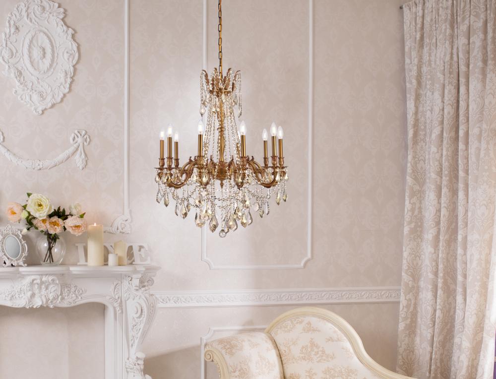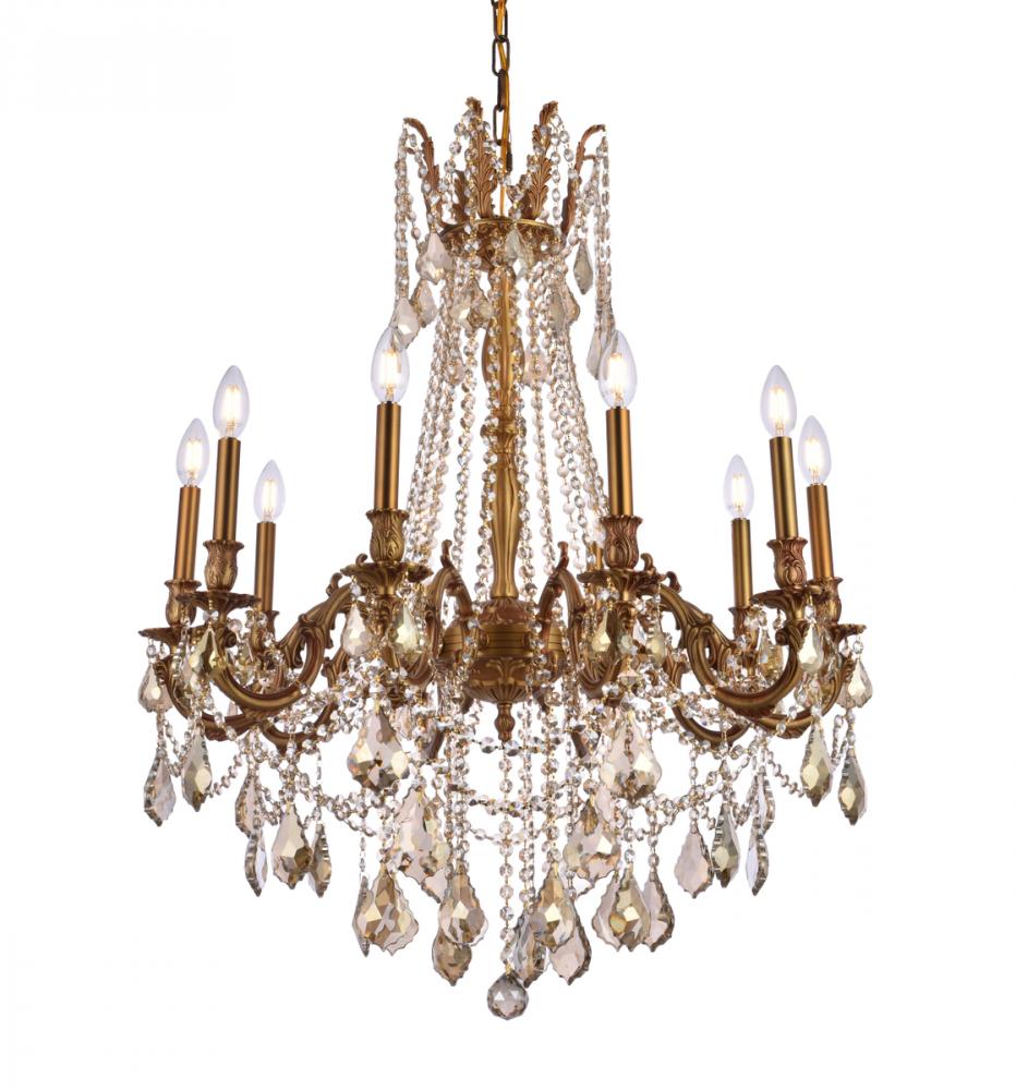 Rosalia 10 light French Gold Chandelier Golden Teak (Smoky) Royal Cut Crystal