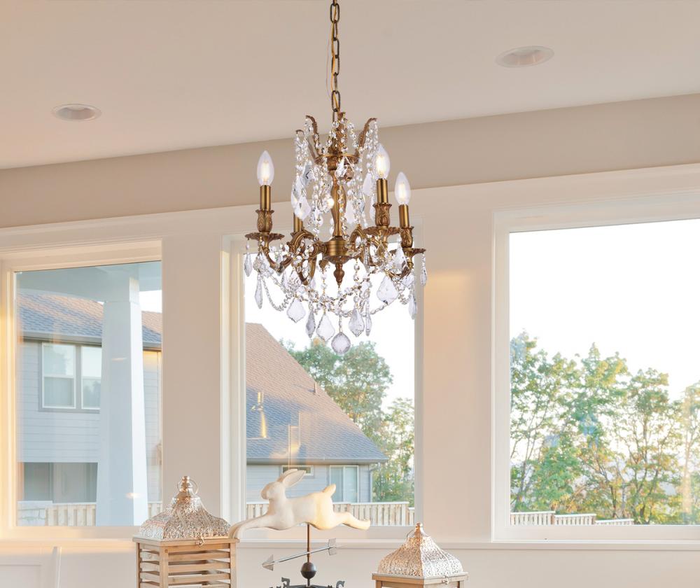 Rosalia collection hanging fixtures bring the decadence and splendor of Austro-Hungarian royalty into your home. An empire-style frame with curved stylized arms bears exposed bulbs (not included) above while strands of draped octagon crystals and precision-cut crystal pendeloques shimmer below. Available in bold finishes (dark bronze, French gold, and pewter) that hint at the design’s vintage-inspired origins, and with clear or golden-teak crystals, your guests will appreciate the royal treatment. Splendid in a dining room, stairwell, or living room.