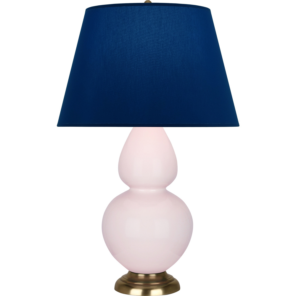 Rose Water Glazed Ceramic with Antique Natural Brass Finished Accents Double Gourd Table Lamp with Navy Fabric Shade with Gray Lining - Our Double Gourd collection features a simple but gracefully curving silhouette. Available in a wide array of vibrant colors and several different base finishes.
